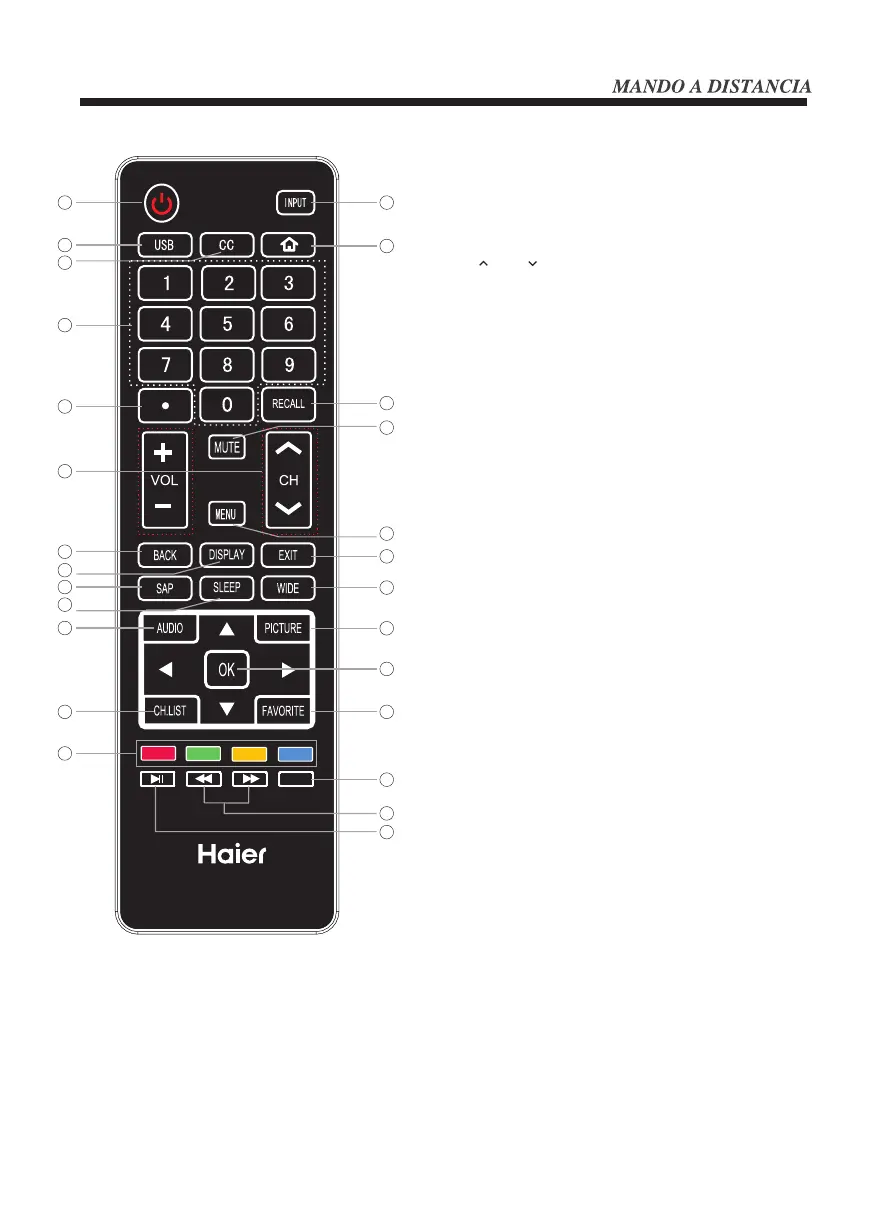 24. Atrás/Avance rápido: Utilice estos botones para controlar la