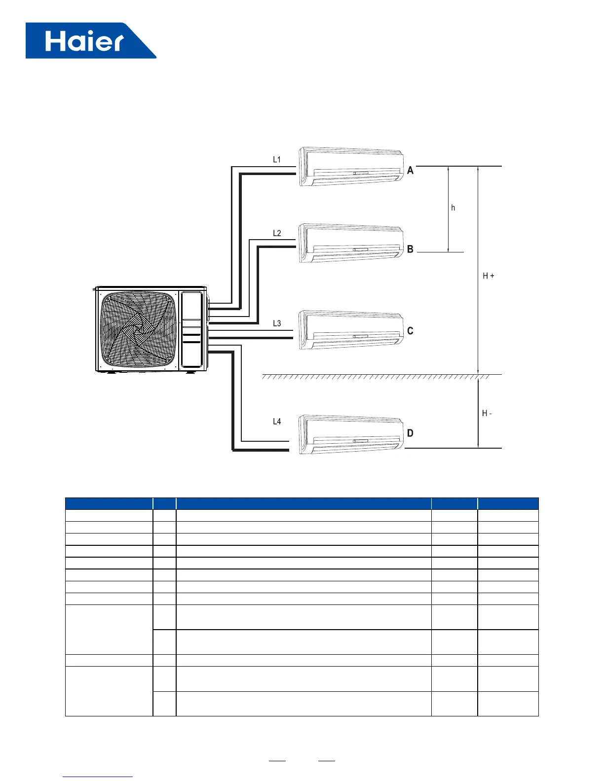 H+ m Drop between the outdoor unit and the indoor unit ≤ 5 ≤ 15