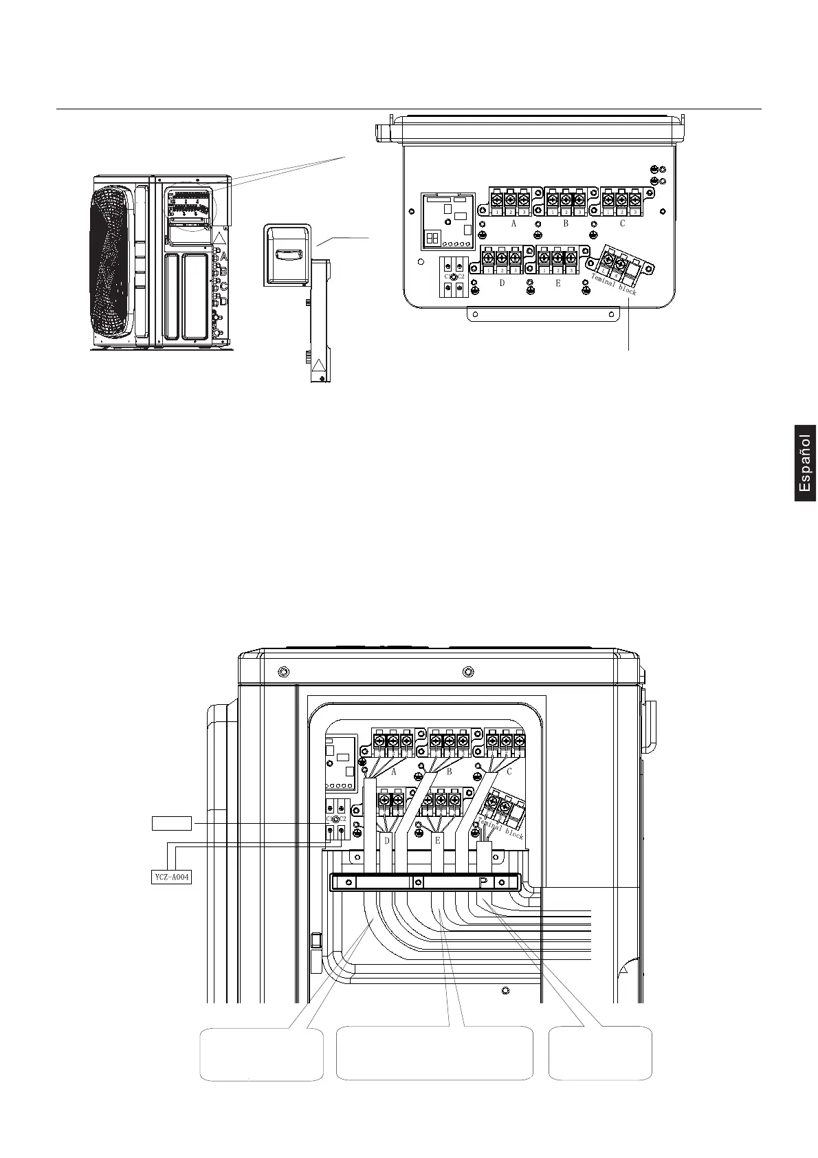 Afloje la cubierta del cable y conecte el cable de alimentación y el cable de comunicación de la unidad interior al terminal