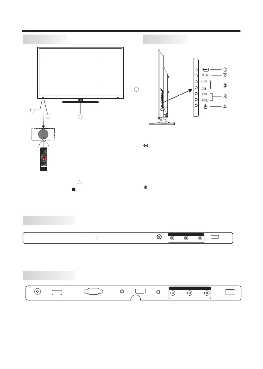 3. CH+/CH-: In TV mode, press "CH+" or "CH-" to