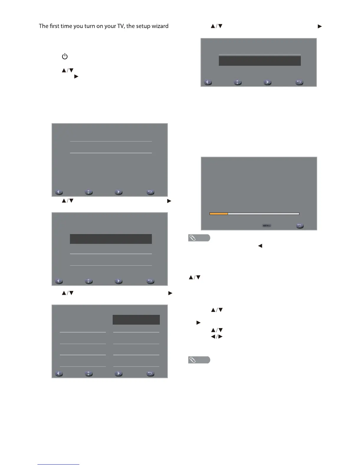 1. Press to turn on the TV. The setup wizard screen
