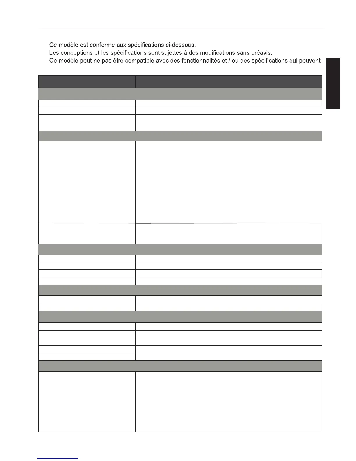 SPÉCIFICATIONS DU PRODUIT
