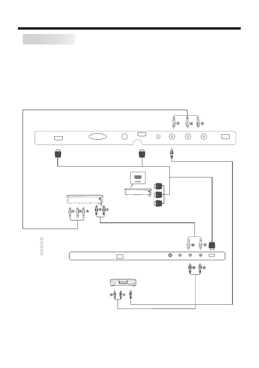 The television's inputs can be connected to the following types of equipment: VCR, multi disc player,