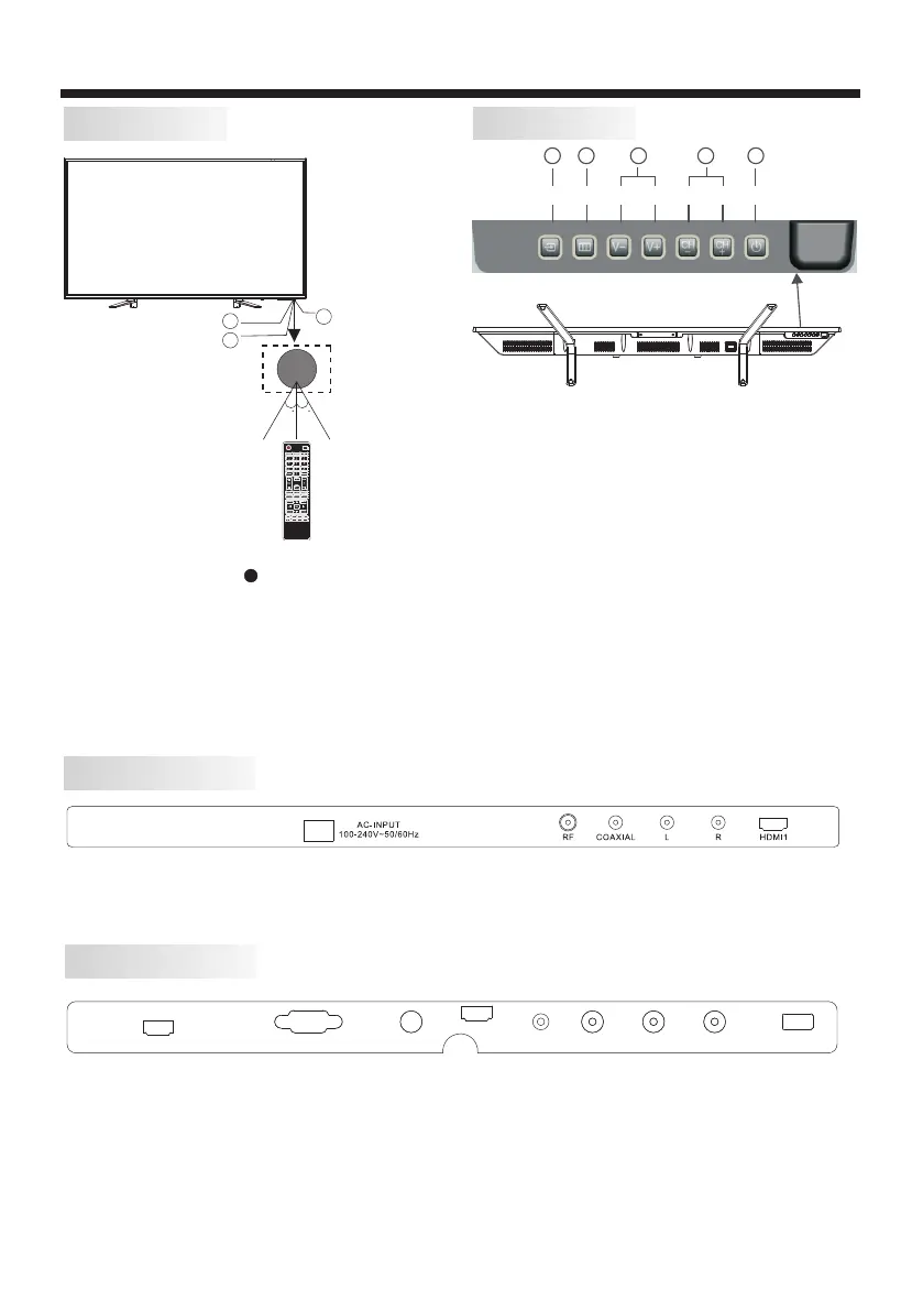 MHL/HDMI2, VGA, PC AUDIO, HDMI3, HEADPHONE, AV/YPbPr(COMPONENT)INPUT, USB.