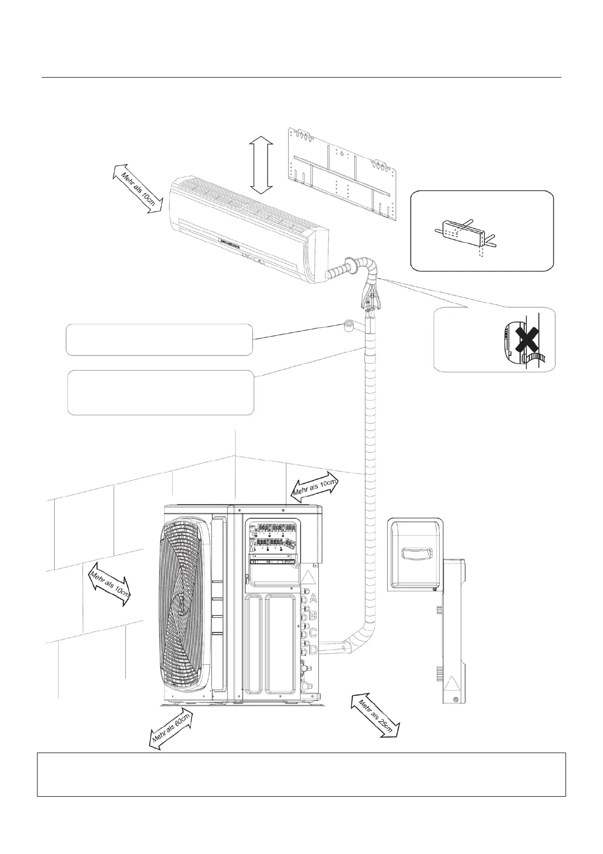 Installieren Sie die Außeneinheit auf horizontalem Niveau. Ein Versagen, dies zu tun, könnte zur Wasserleckage oder –akkumulation führen.