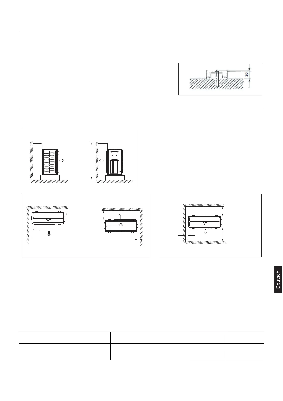 Wo es eine Wand oder andere Hindernisse auf dem Weg von Zuluft- oder Abluftstrom der Außeneinheit gibt, folgen Sie die