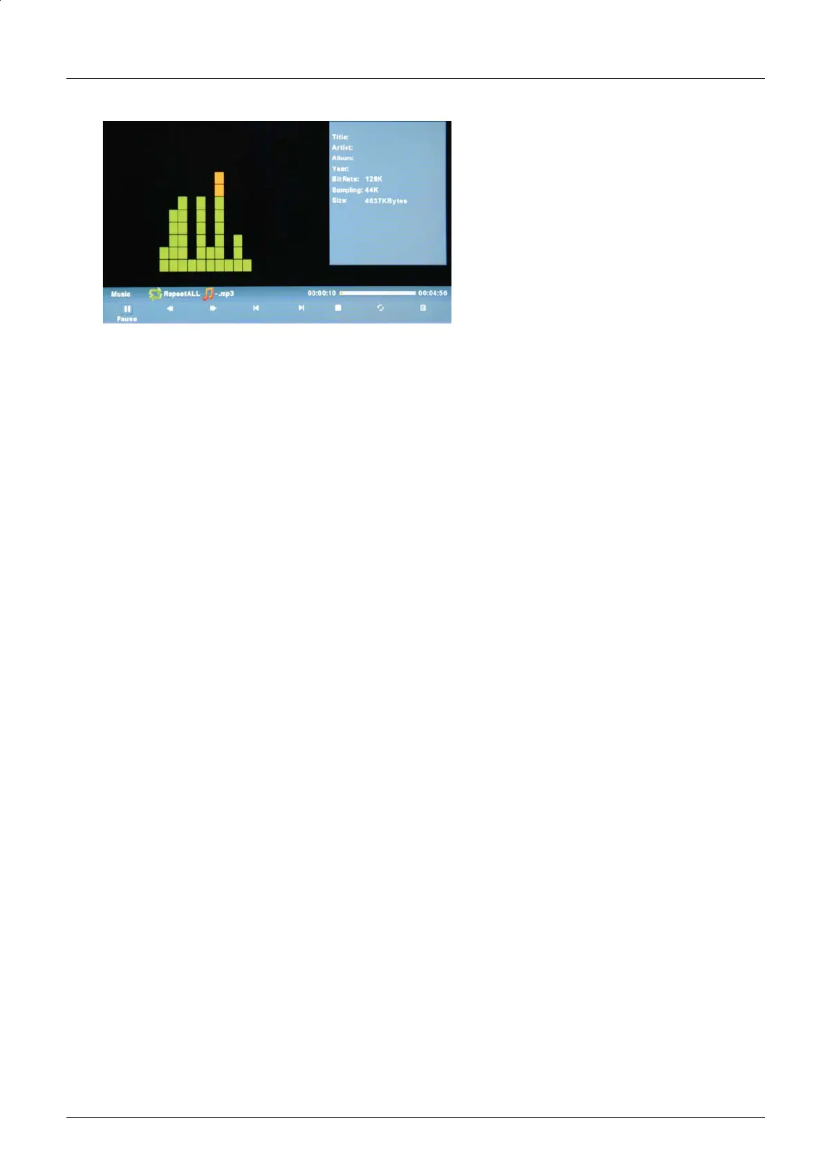 Press the OK button to display the music menu, and press the button to hide it.