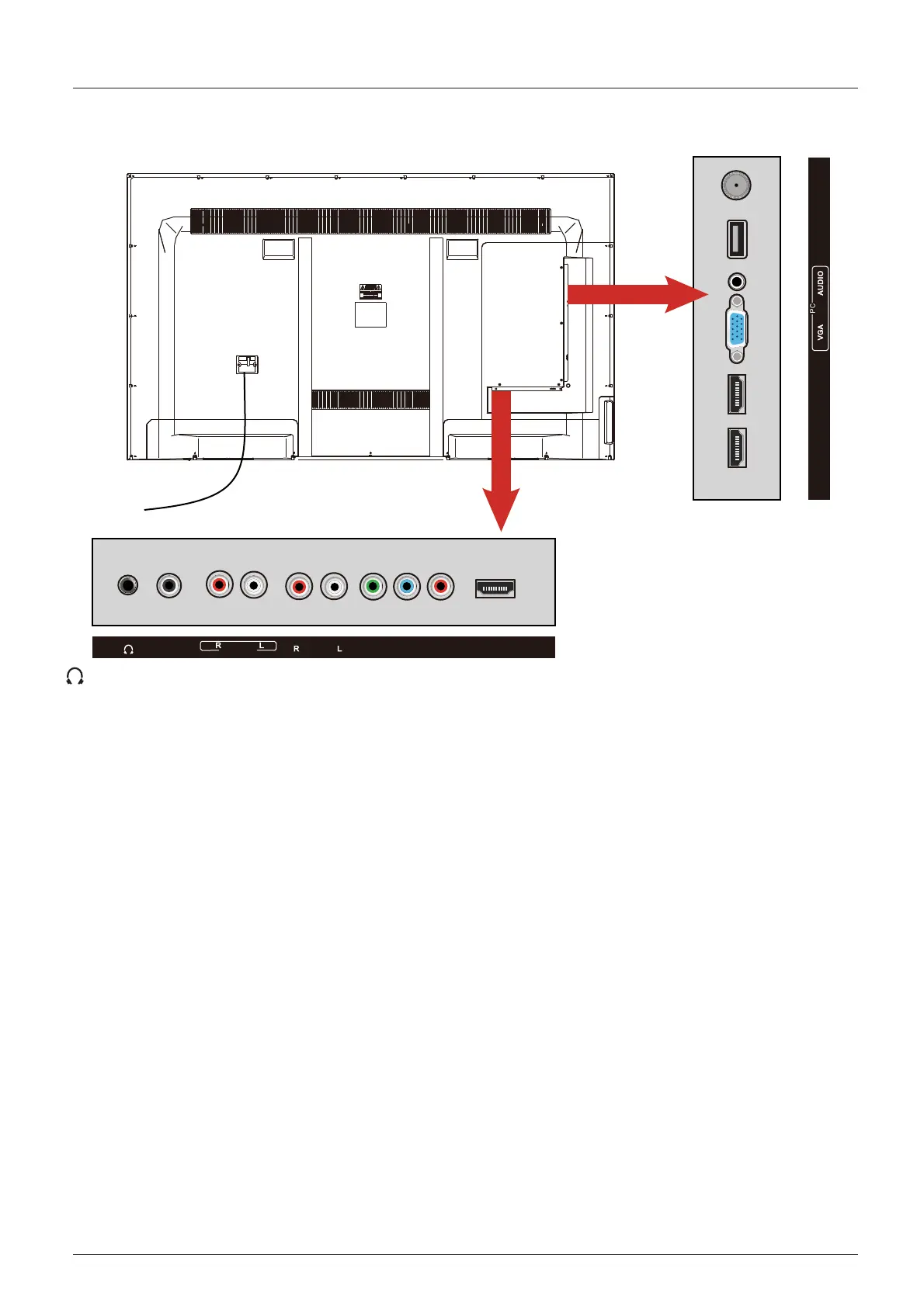 AUDIO OUT R/L : Connectez les câbles audio à un appareil audio externe tel que la barre de son
