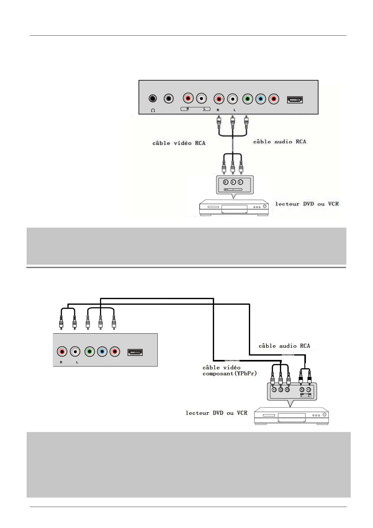 -Connecter les prises de sortie YPbPr du lecteur de DVD ou VCR aux prises d'entrée YPbPr