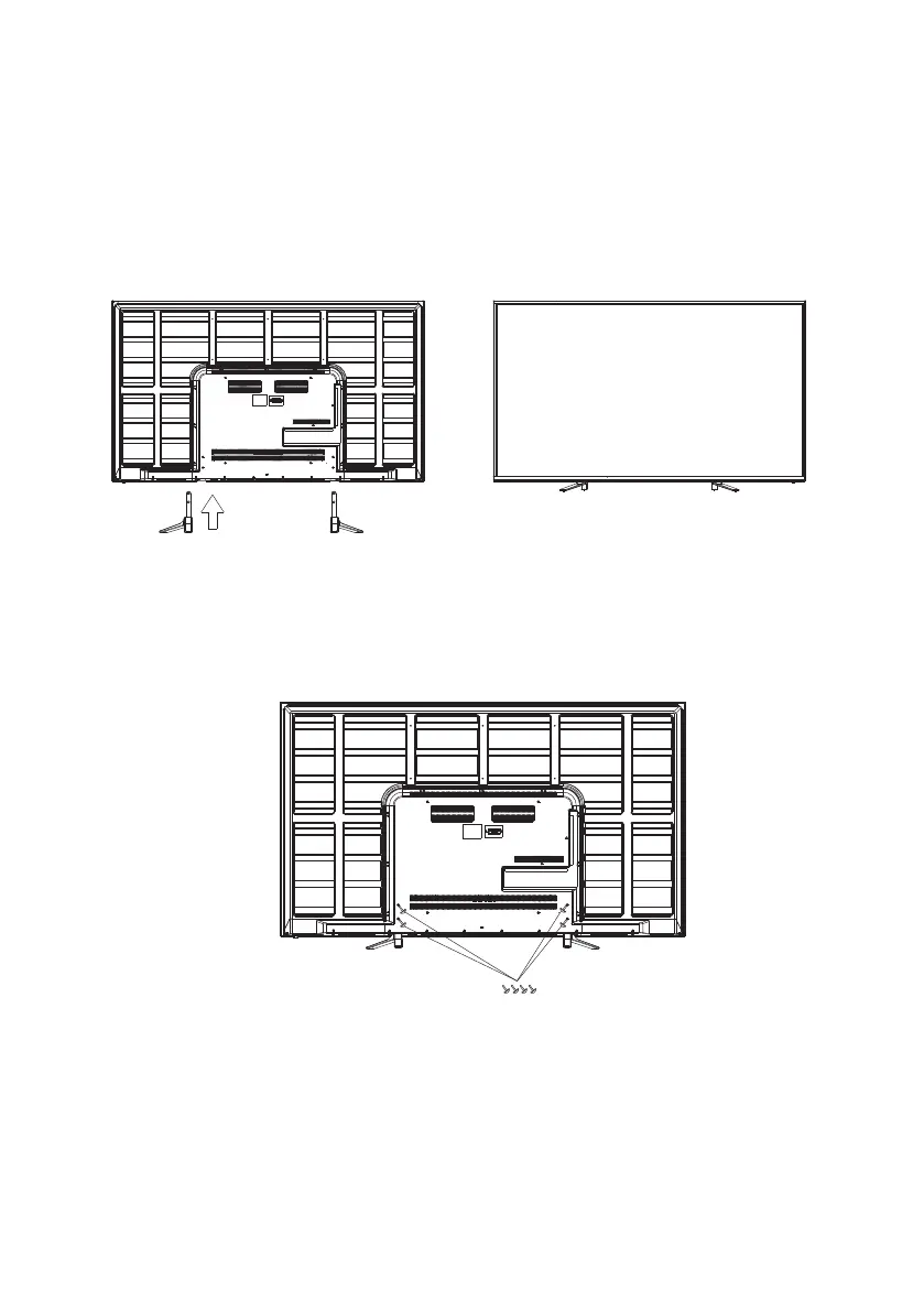 -Veuillez s'assurer que les pieds de stand de TV sont pointés vers l'extérieur et avec le pied
