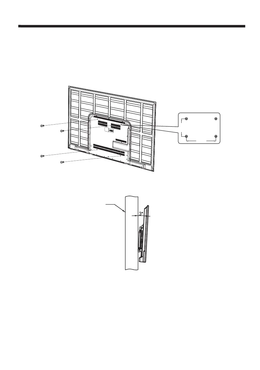 Attention: l'angle entre le téléviseur et le mur ne doit pas être supérieure à 3 degrés.