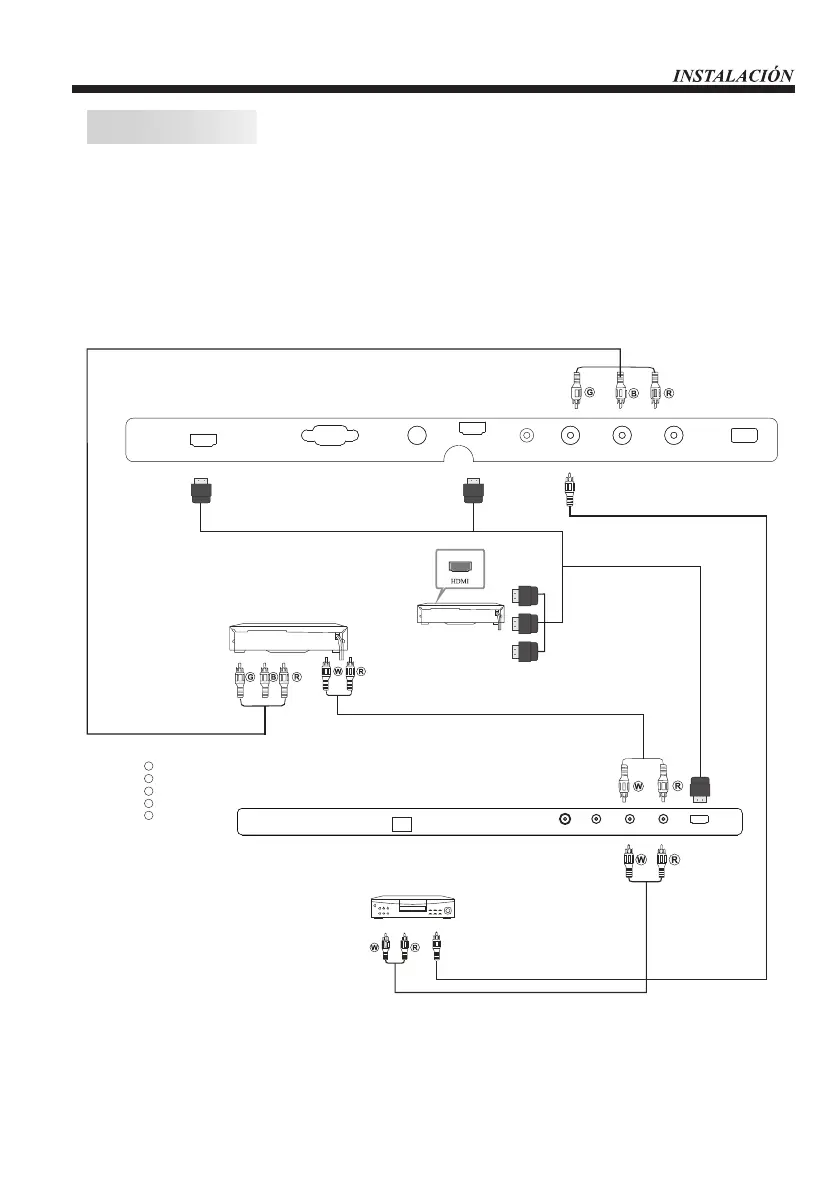Hay una entrada Componente (Y, Pb, Pr) y otra de video compuesto (AV) ubicadas en la parte trasera del TV.