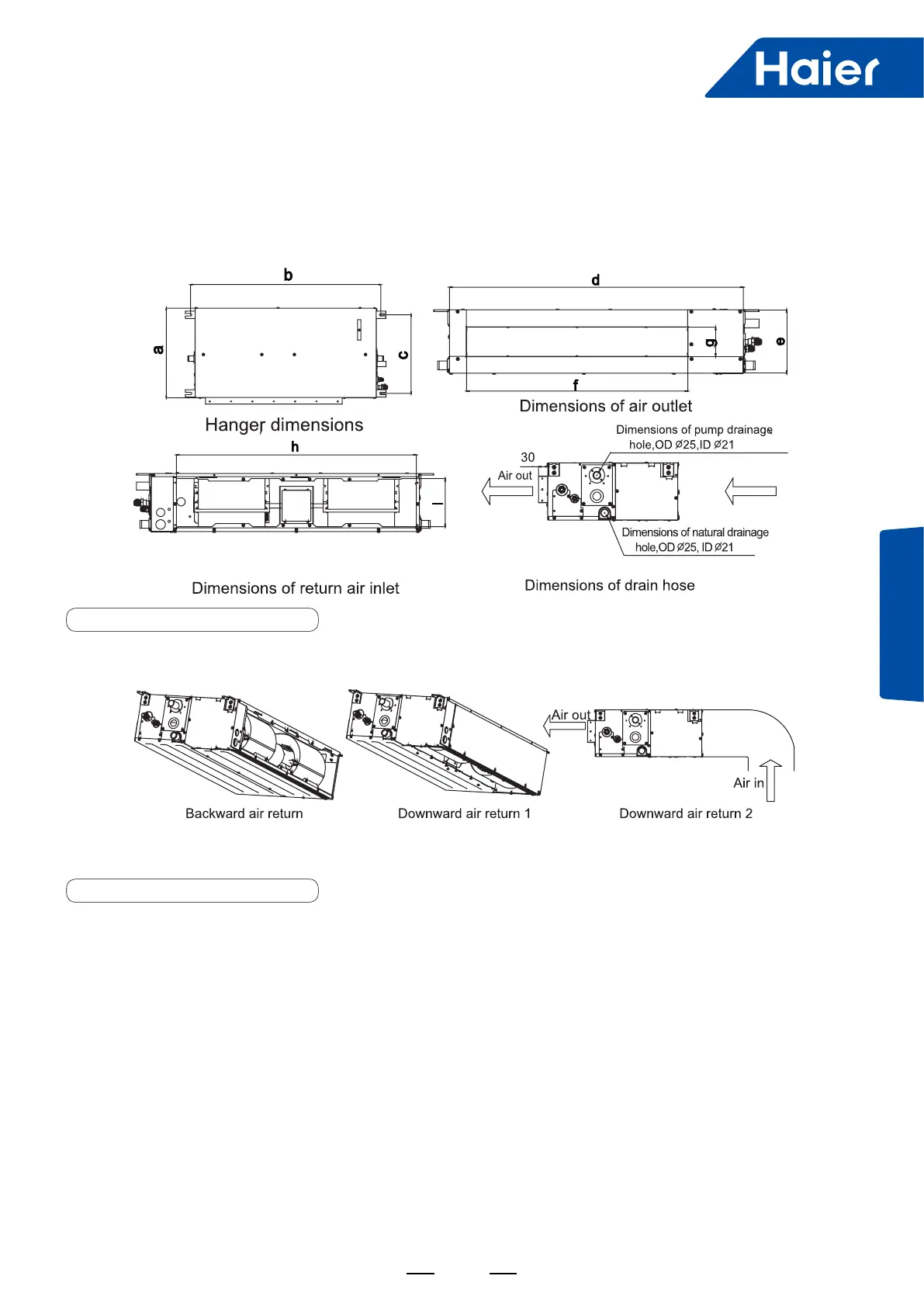 Note: the downward air return mode would increase noise 3-5dB(A). It is recommended to install the air conditioner