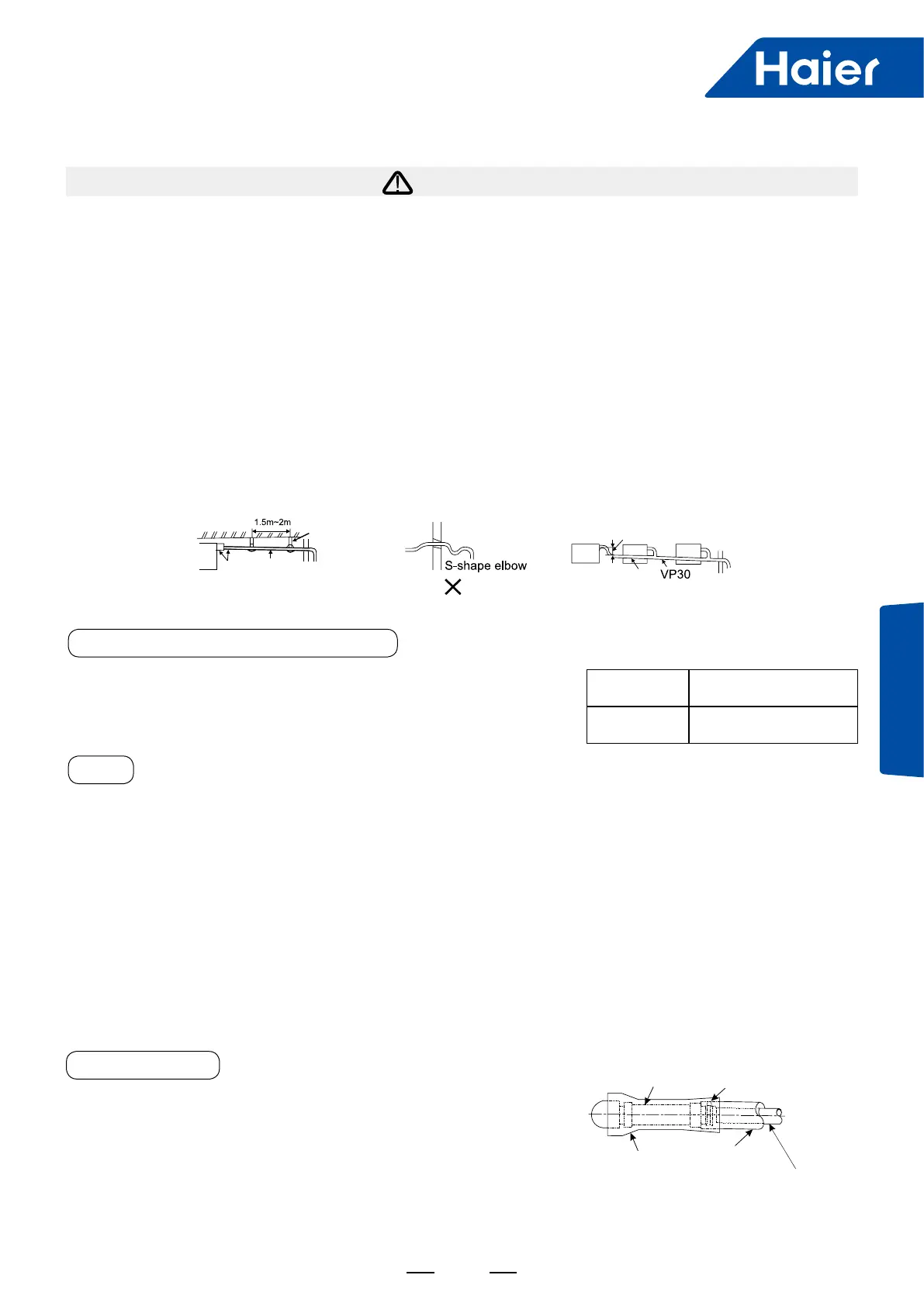■ The lateral length of the drainpipe should be kept within 20m. Under the condition of long pipe, a support should