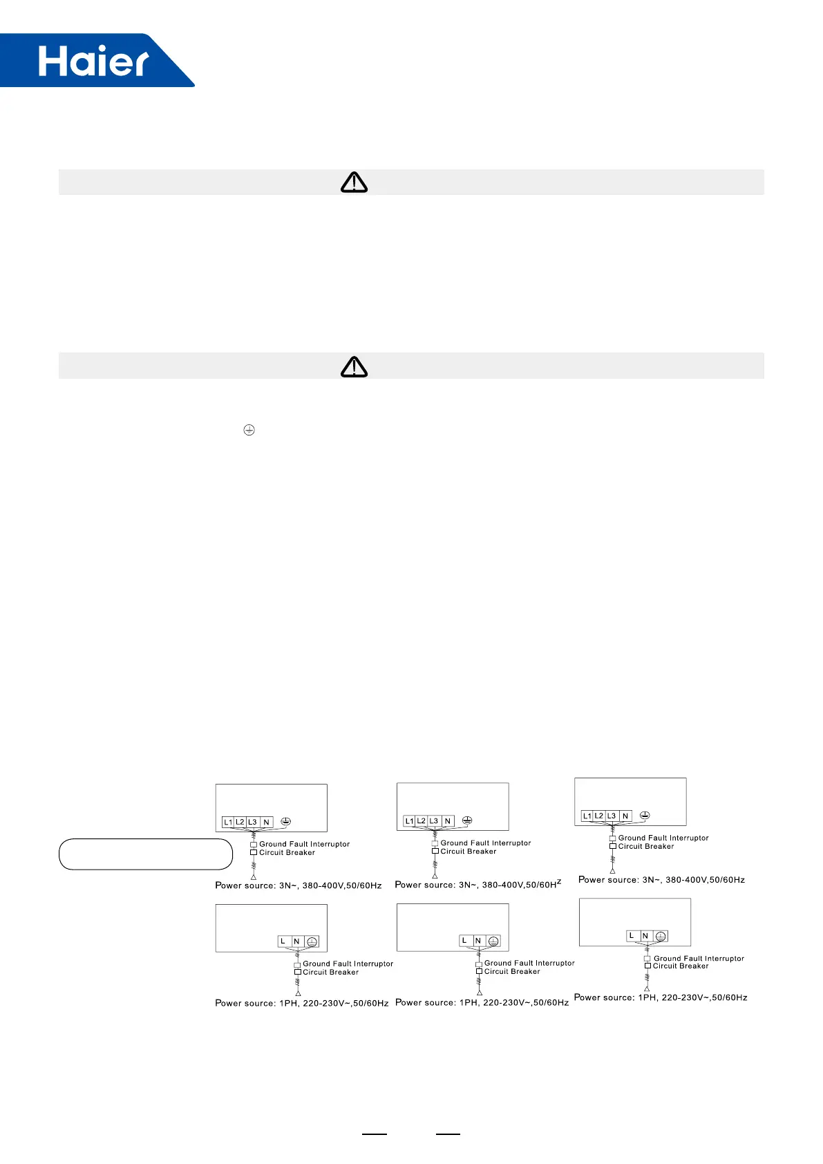 single electrical source, but its capacity and specications should be calculated. Indoor & outdoor units should be