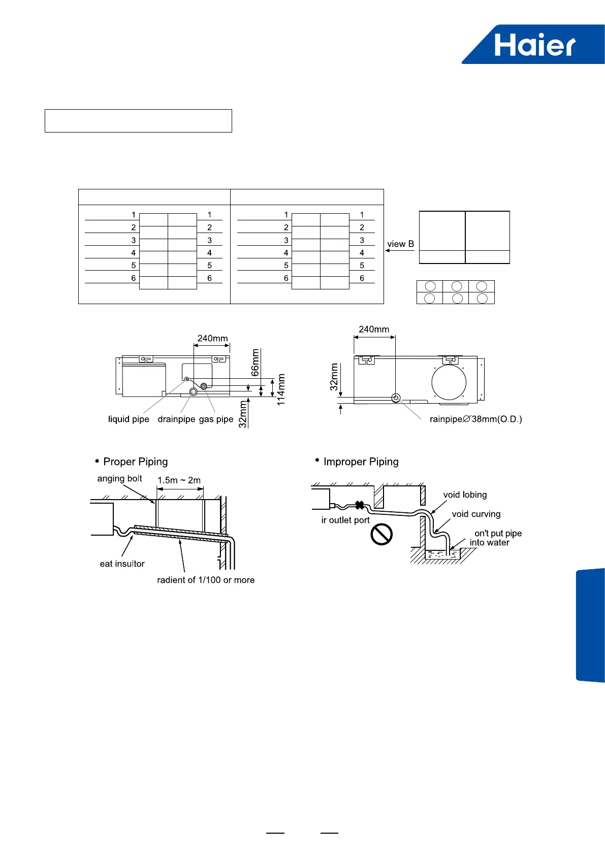 (b) When connecting the drainpipe to the equipment, don't apply too much force on one side of the equipment.