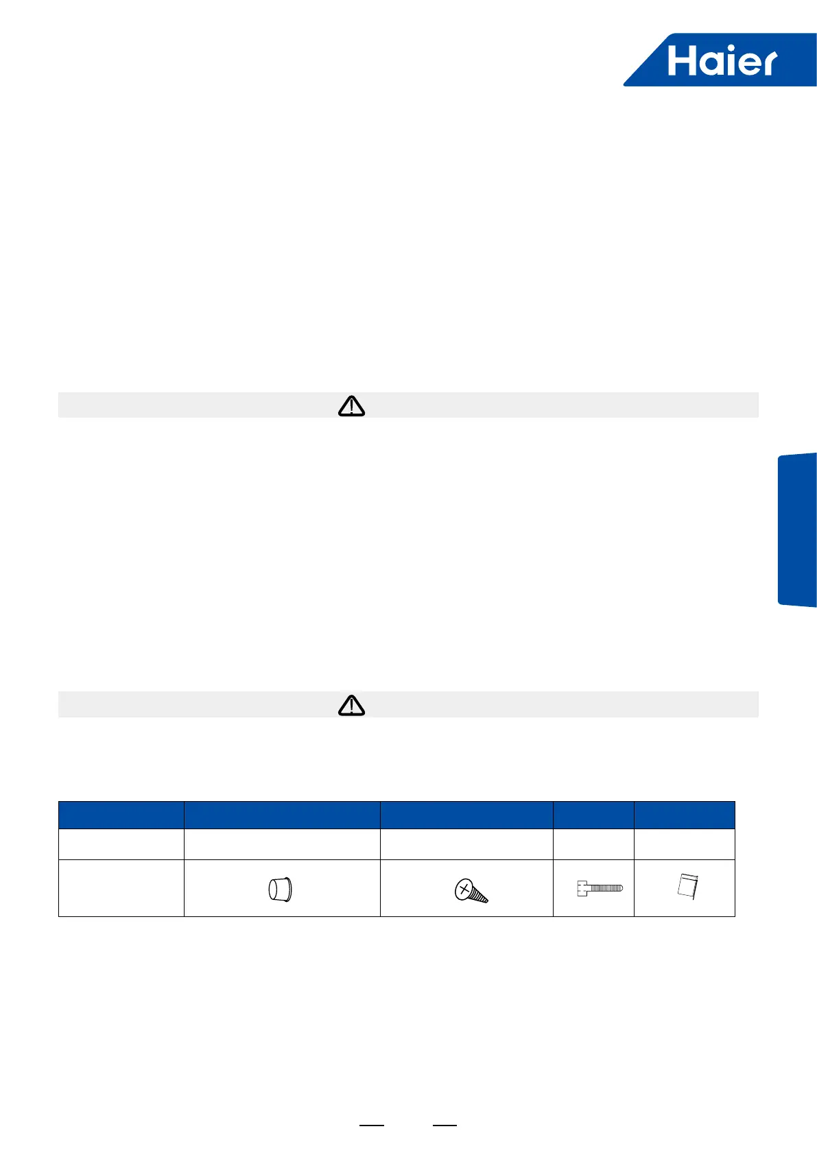 Accessories and ttings necessary for installation shall be kept and must not be discarded!