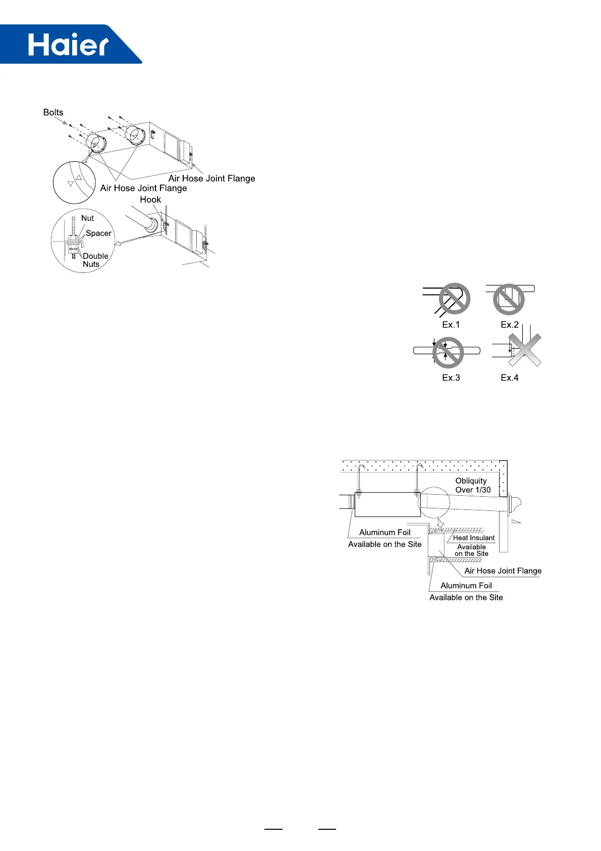 c. To prevent air leakage, joint section between ange and air hose shall be wrapped with aluminum foil.