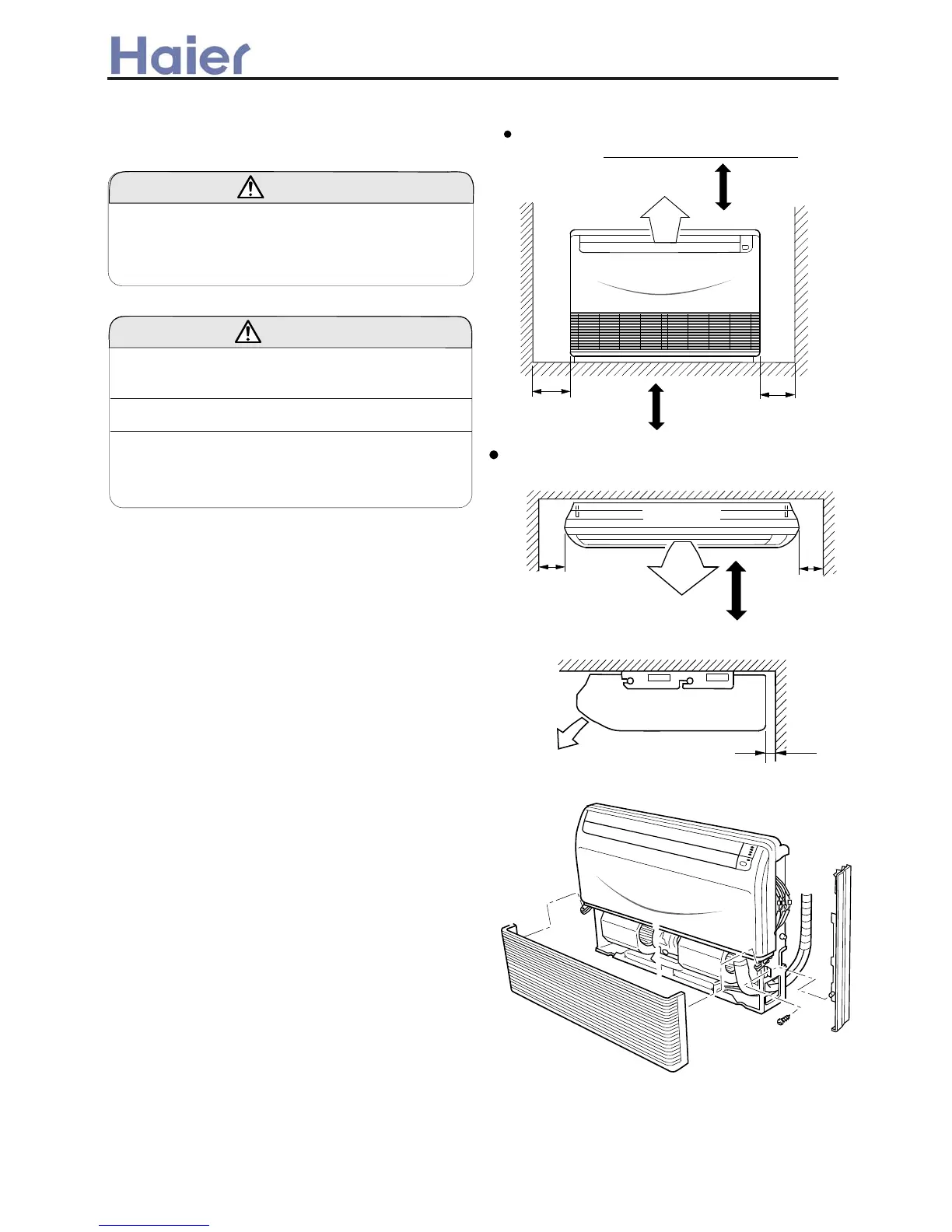 (1) Install the indoor unit level on a strong wall, floor,