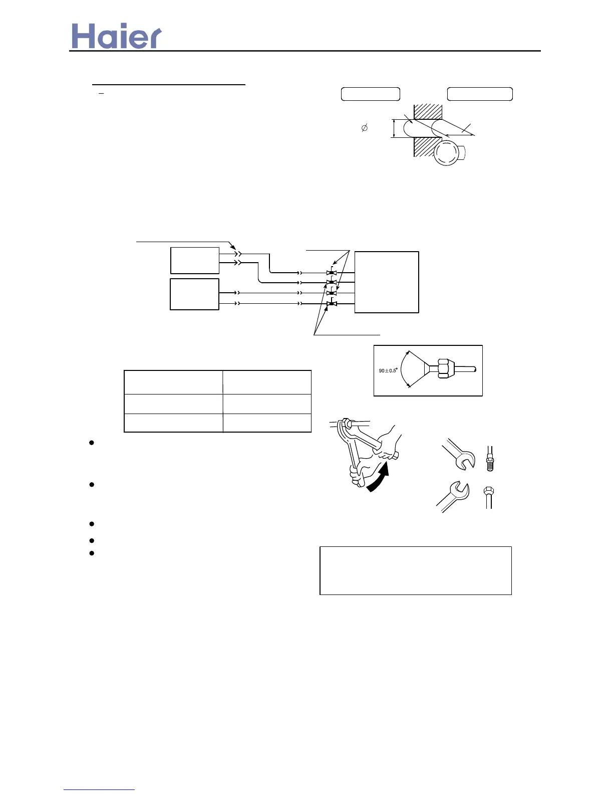Apply refrigeration oil on the end of the pipe to be connected and on the flared section.