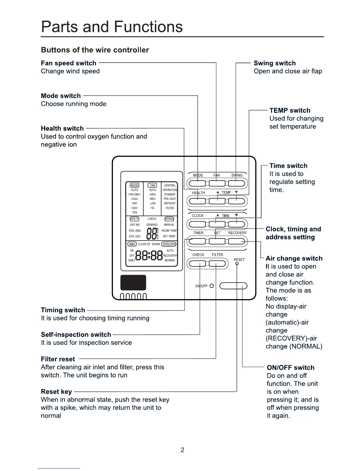 Haier AB162MCERA - Buttons of the wire controller