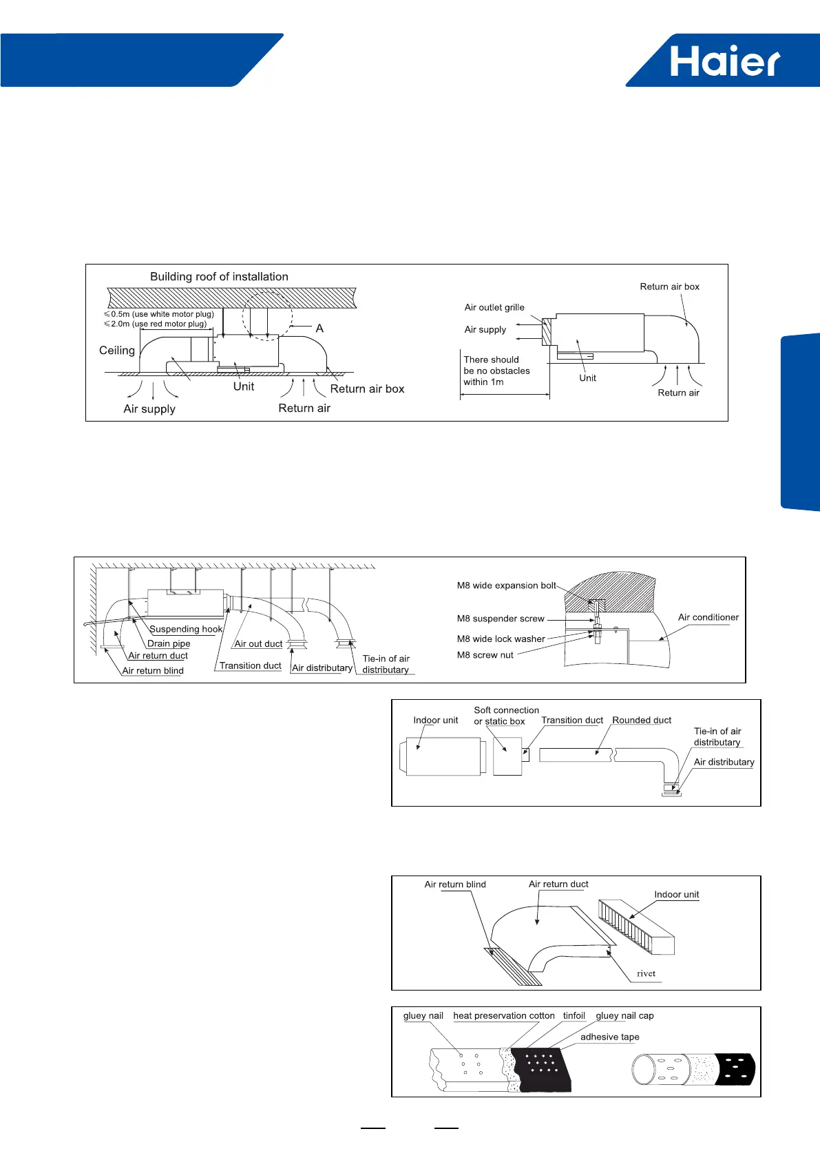 ■ When installing the ceiling Conceal indoor unit, the air return duct must be designed and installed as gure