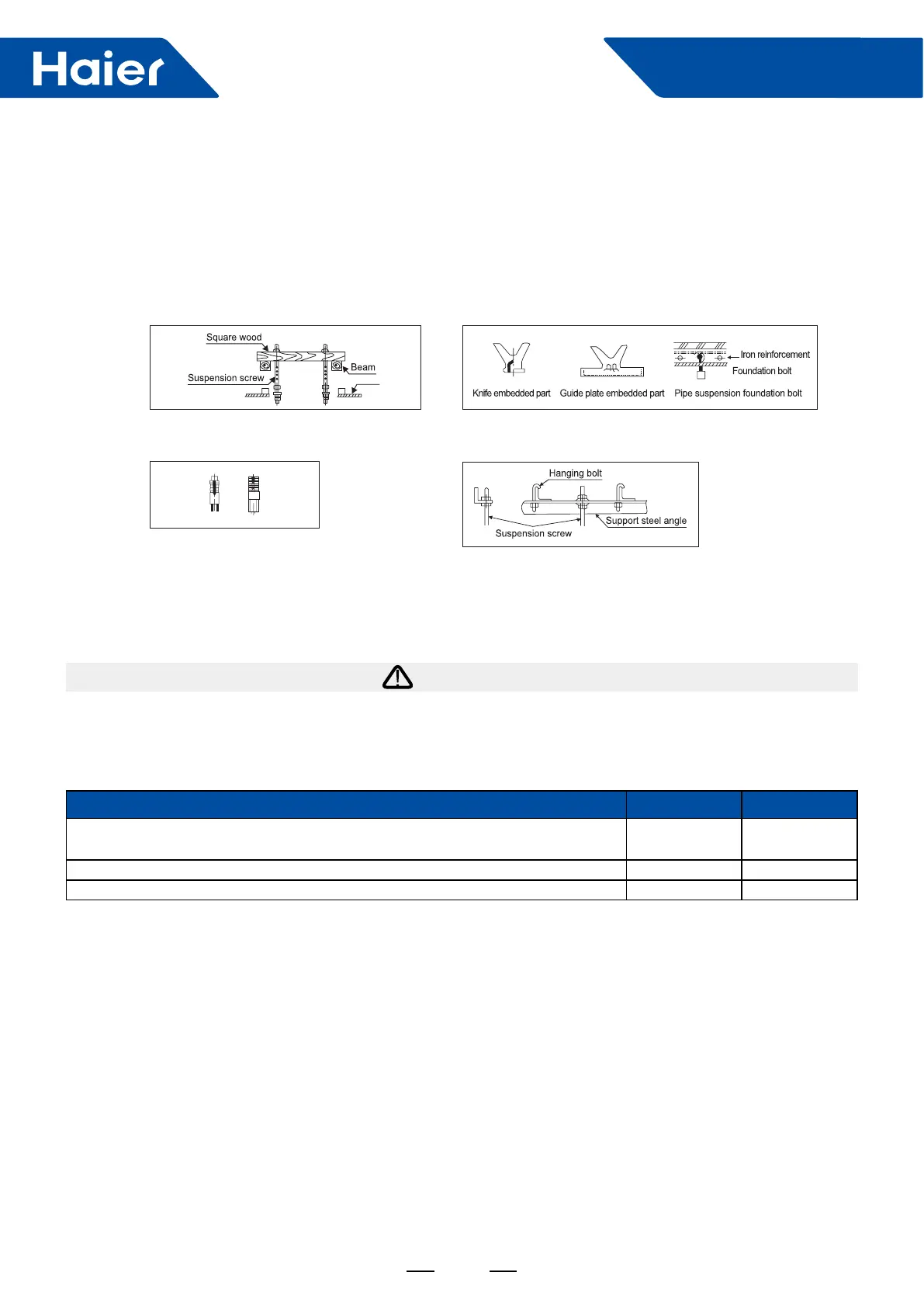M10 size is the only choice). These screws shall be installed as follows with space adapting to air conditioner