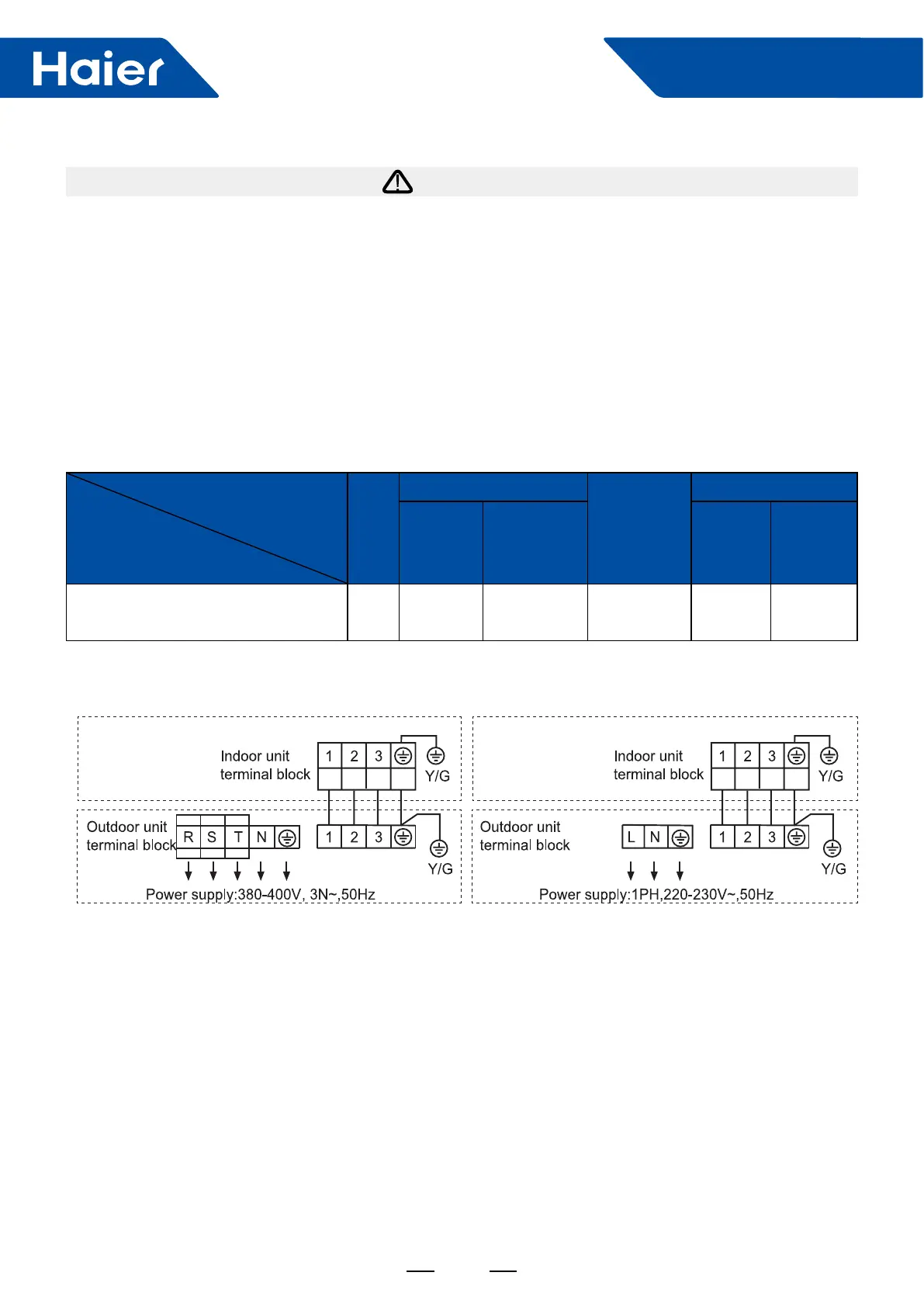 Make wiring to supply power to the outdoor unit, so that the power for the indoor unit is supplied by terminals.