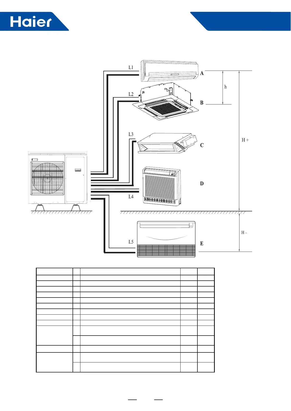 A,B,C,D,E liquid pipe mm Size of the liquid side connection pipe φ6.35 /