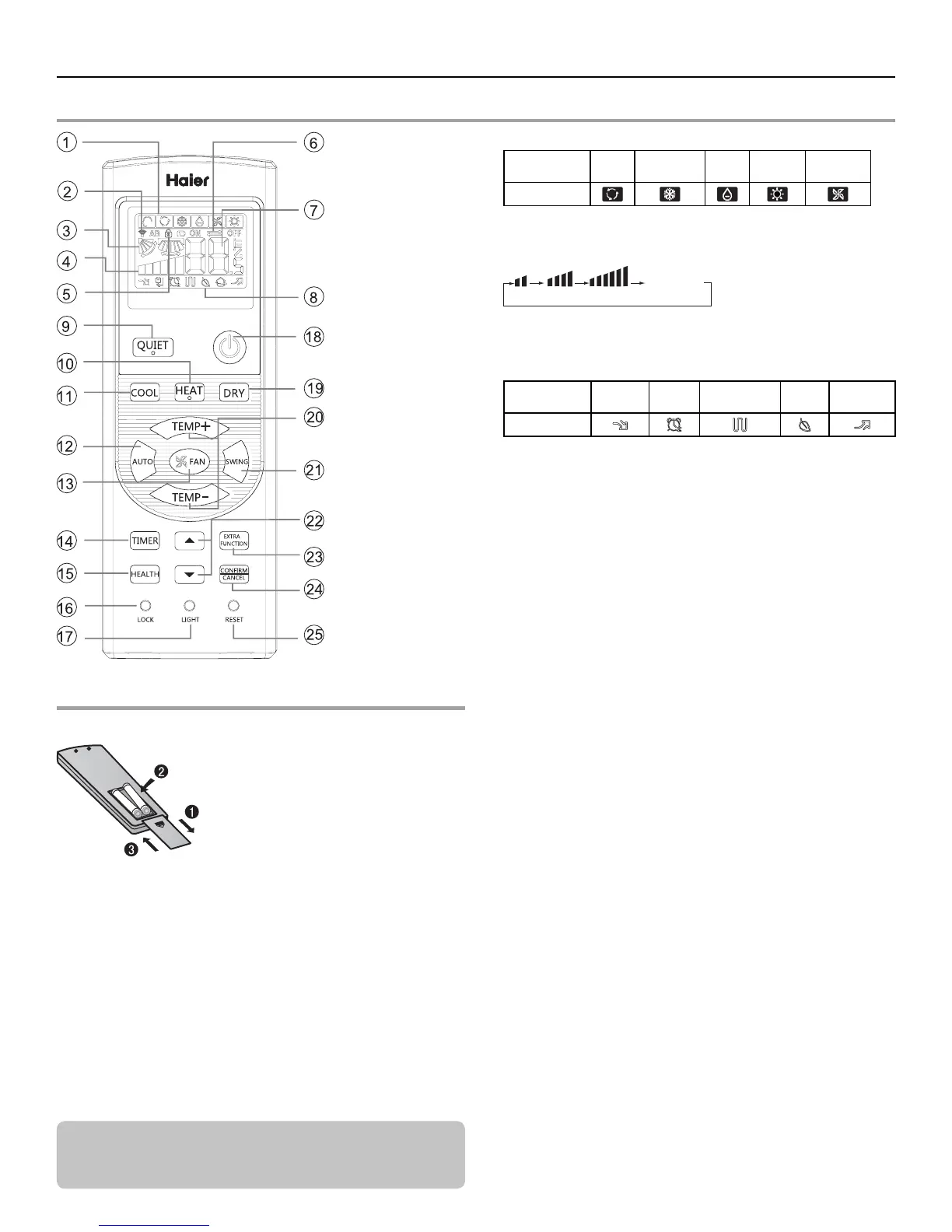Fonction : fonction uniquement ventilateur, fonction envoi du souffle