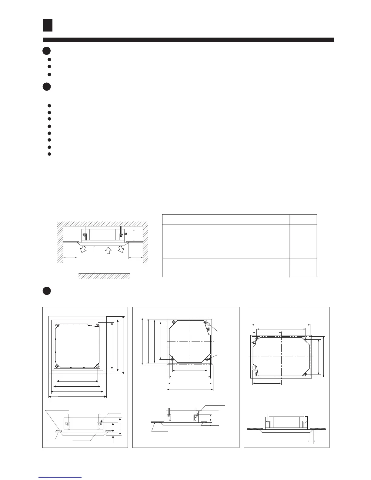 (1) Position of ceiling opening between unit and suspending bolt.