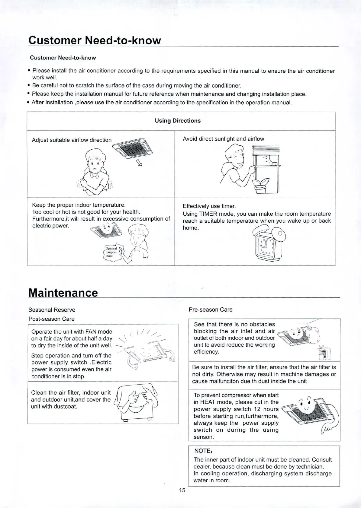 After installation ,please use the air conditioner according to the specification in the operation manual.