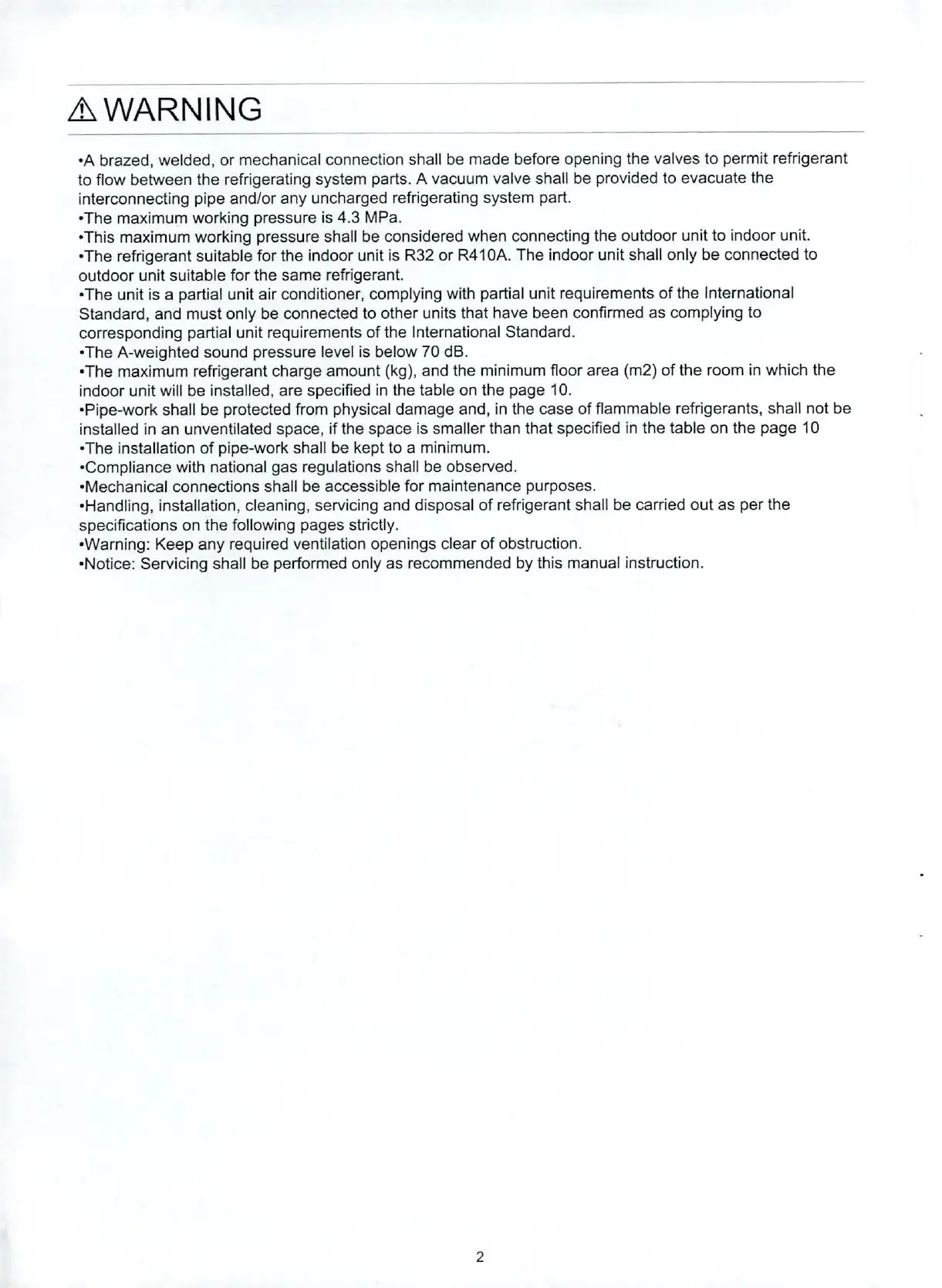 The refrigerant suitable for the indoor unit is R32 or R410A. The indoor unit shall only be connected to