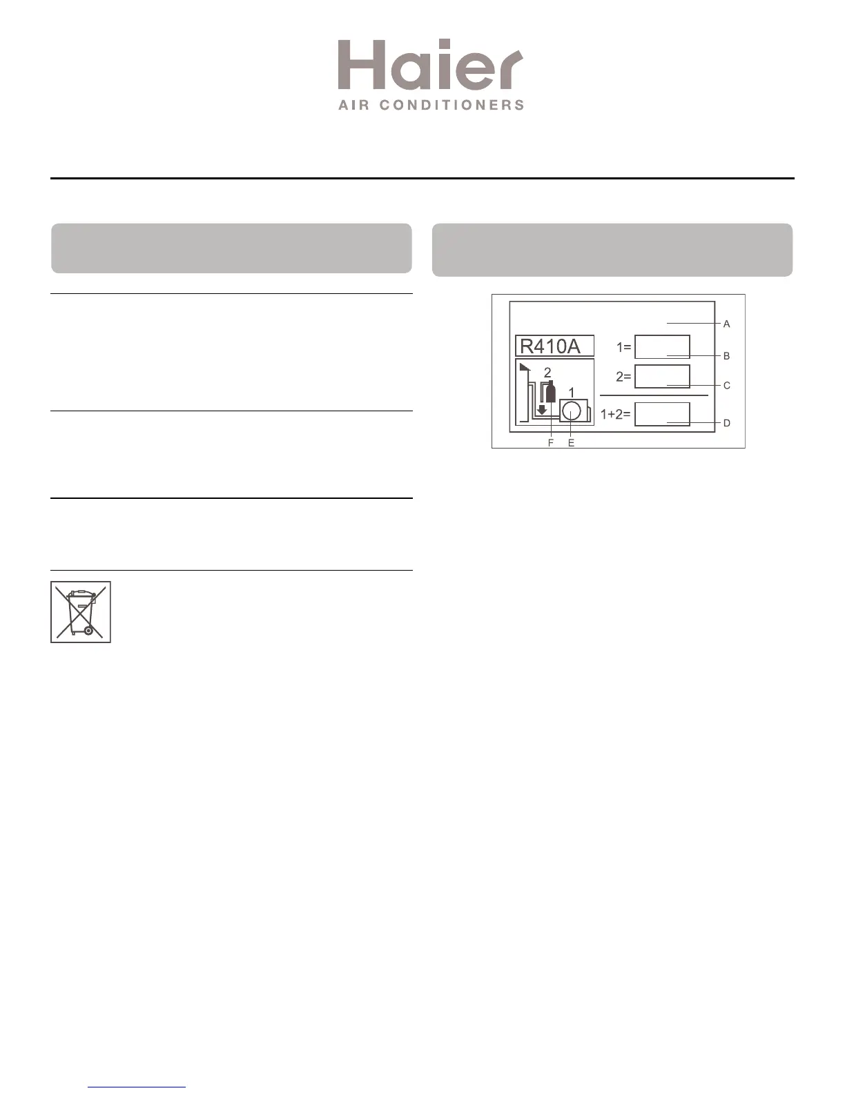 • 1+2 charge totale de réfrigérant sur l’étiquette de charge de