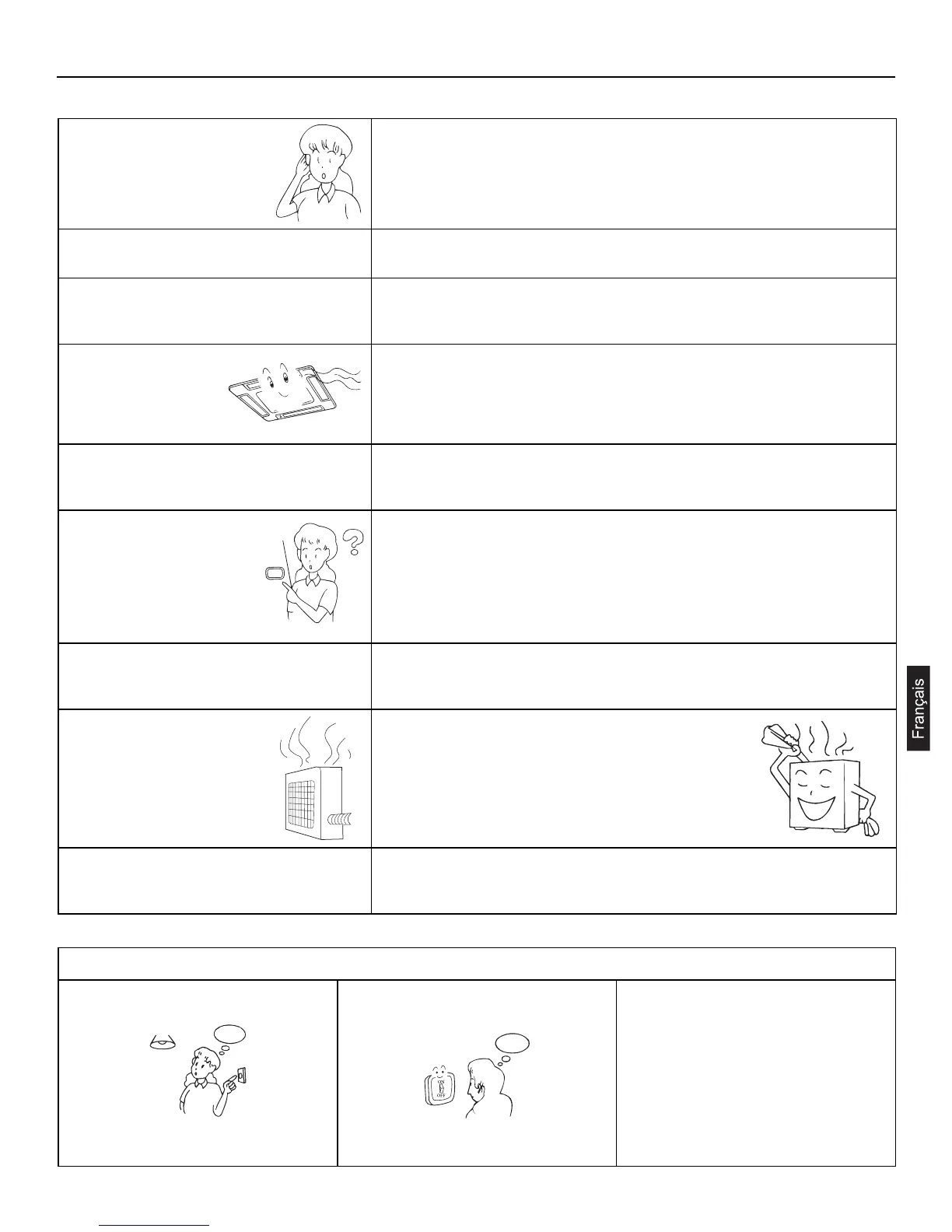 Vous pouvez sentir une odeur. L'air qui sort de l'unité intérieure a quelque fois une odeur. L'odeur peut