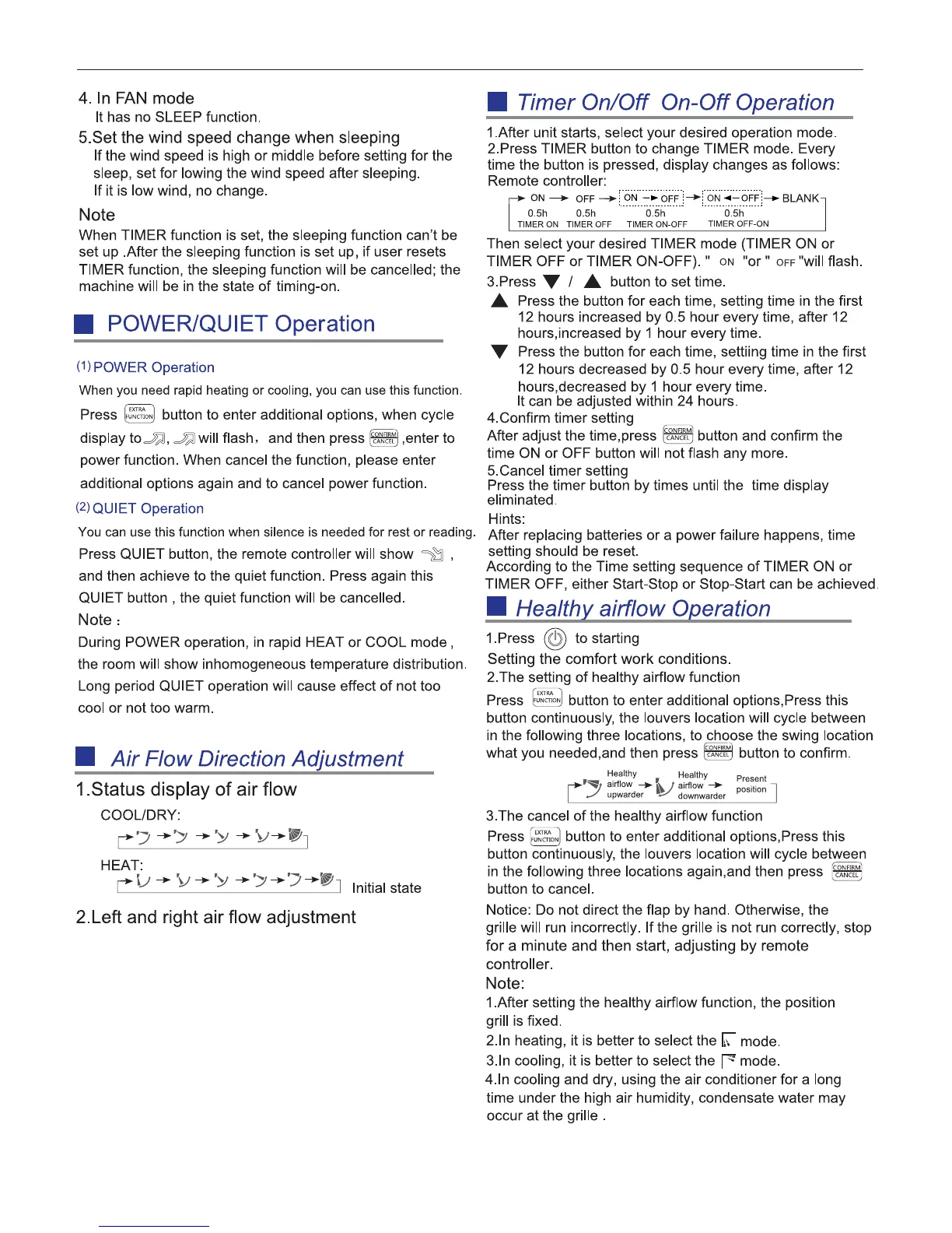 Haier ab48es1era - Power and Quiet Operation; Timer On;Off Operation; Healthy Airflow Operation
