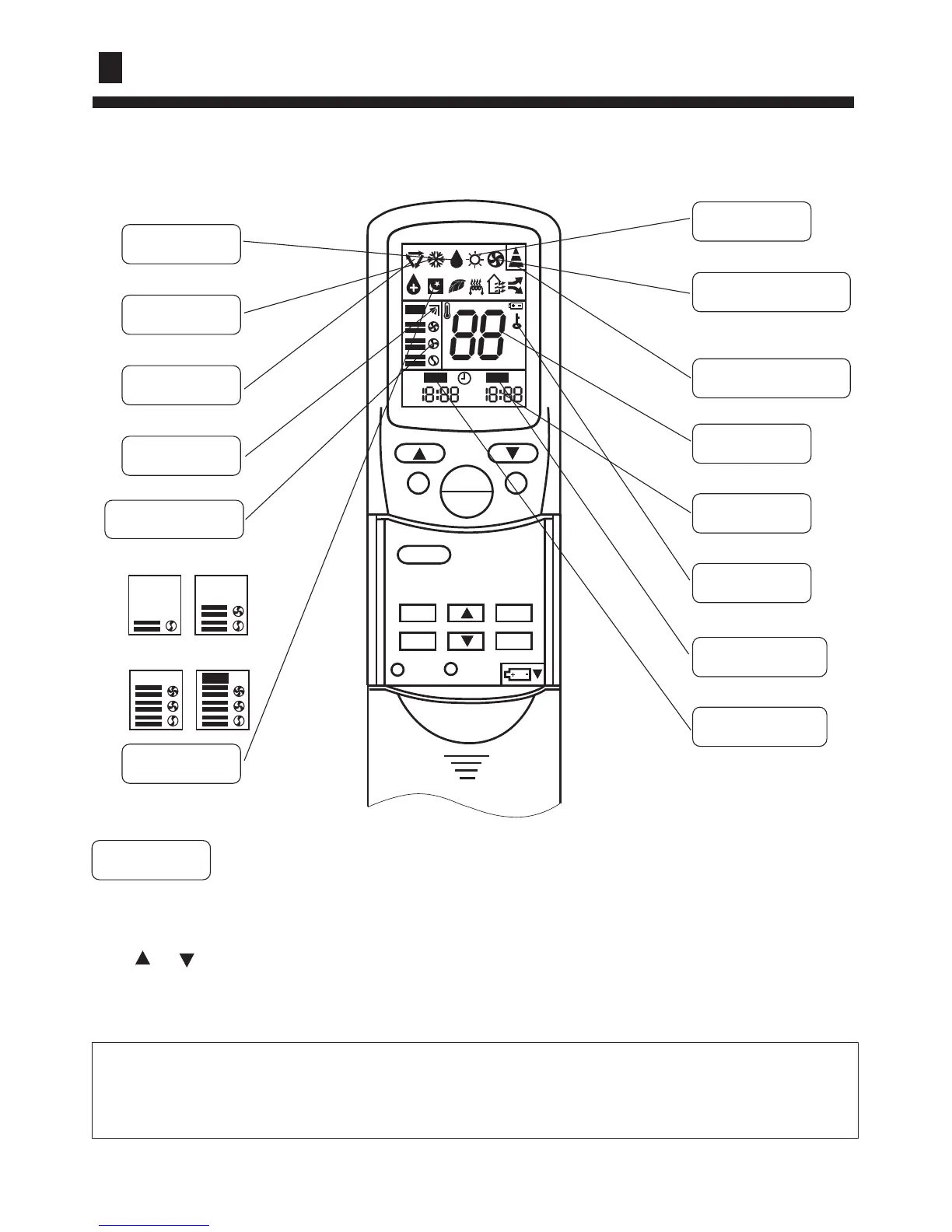 After replacing with new batteries, remote controller will conduct self-check, displaying
