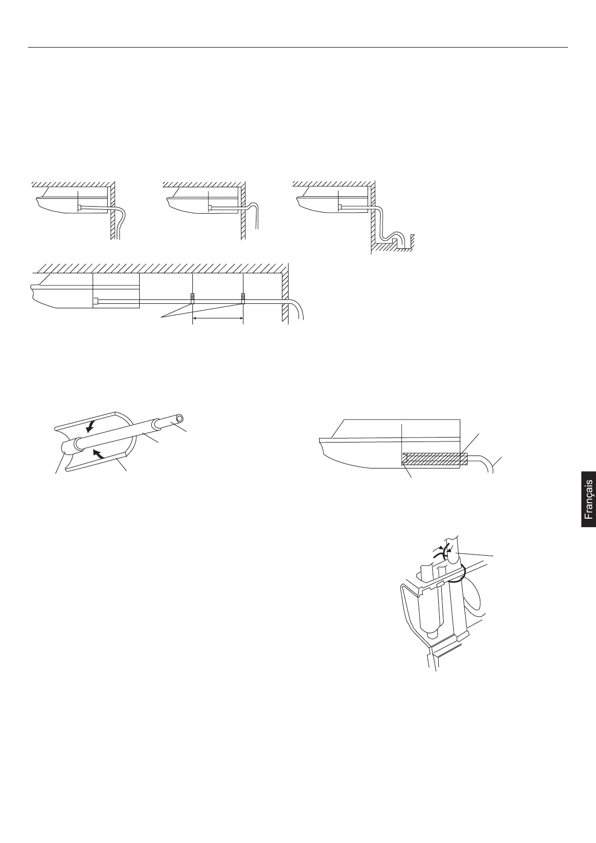 Pendant l’installation du tuyau, faire attention à ne pas exercer de pression sur le trou d’évacuation condensats de l’unité intérieure.