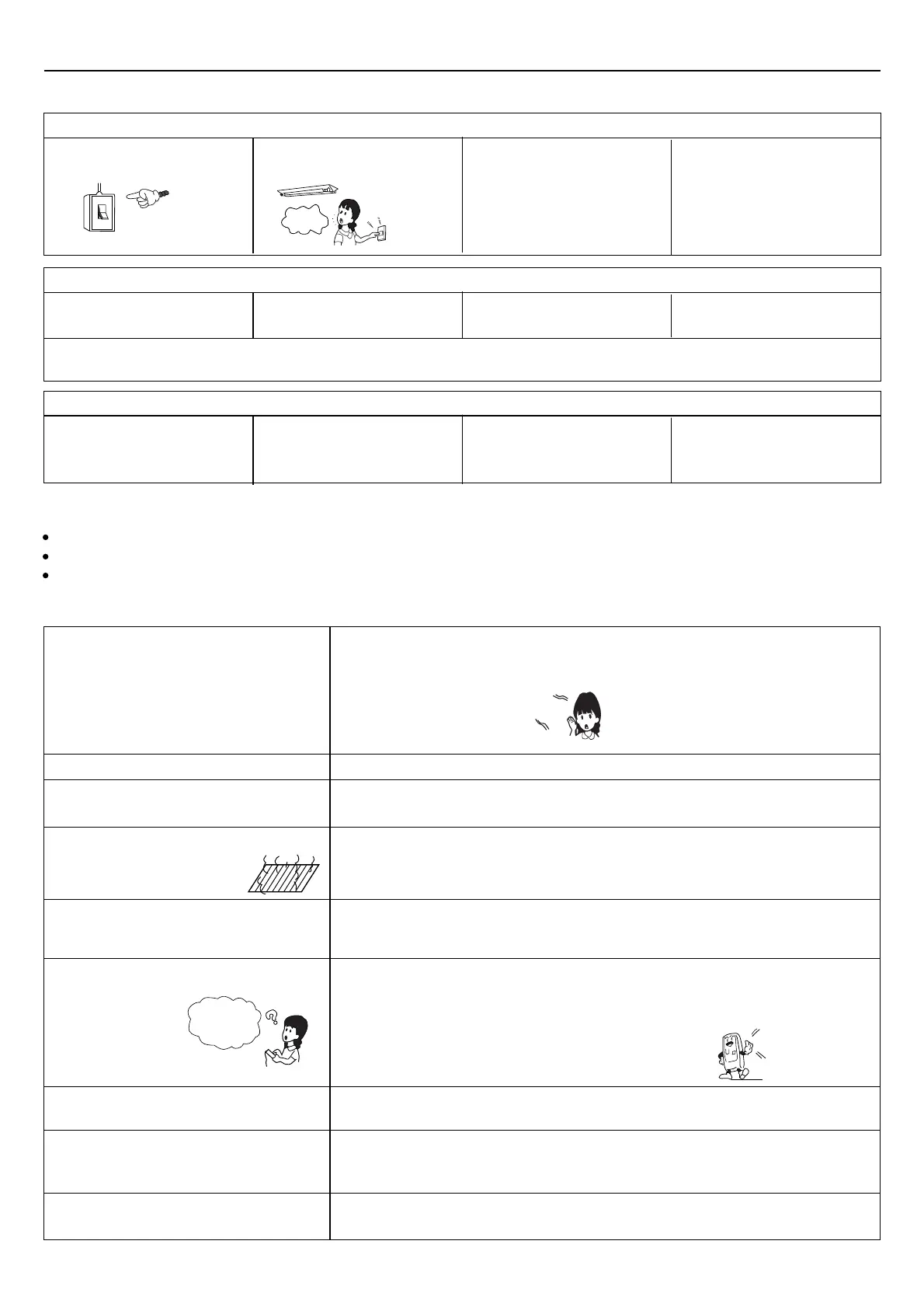 When the air conditioner does not operate properly after you have checked the above mentioned items or when the following