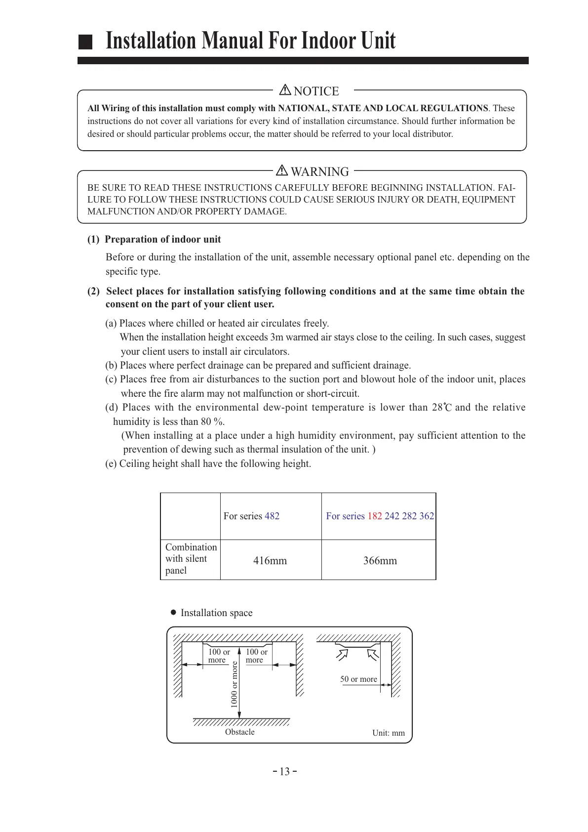 (2)  Select places for installation satisfying following conditions and at the same time obtain the