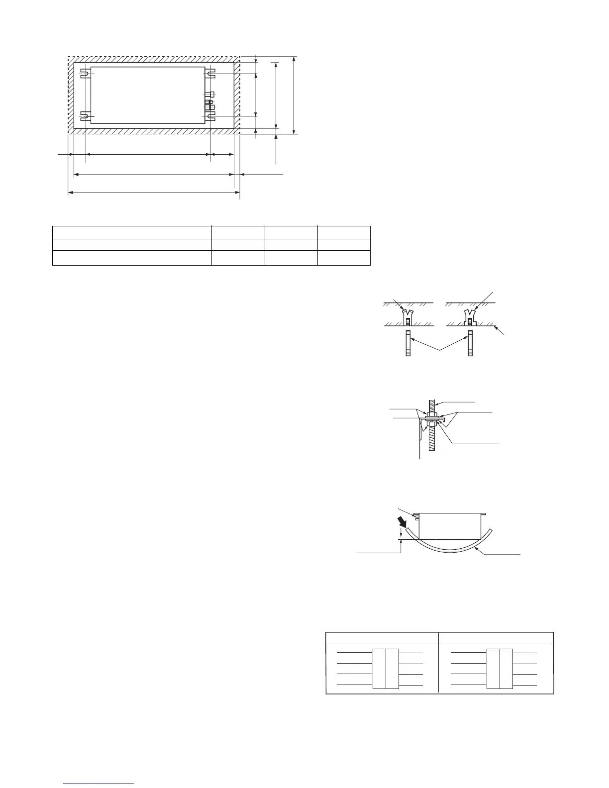 1.Medidas del orificio en el techo y posición de los pernos de anclaje