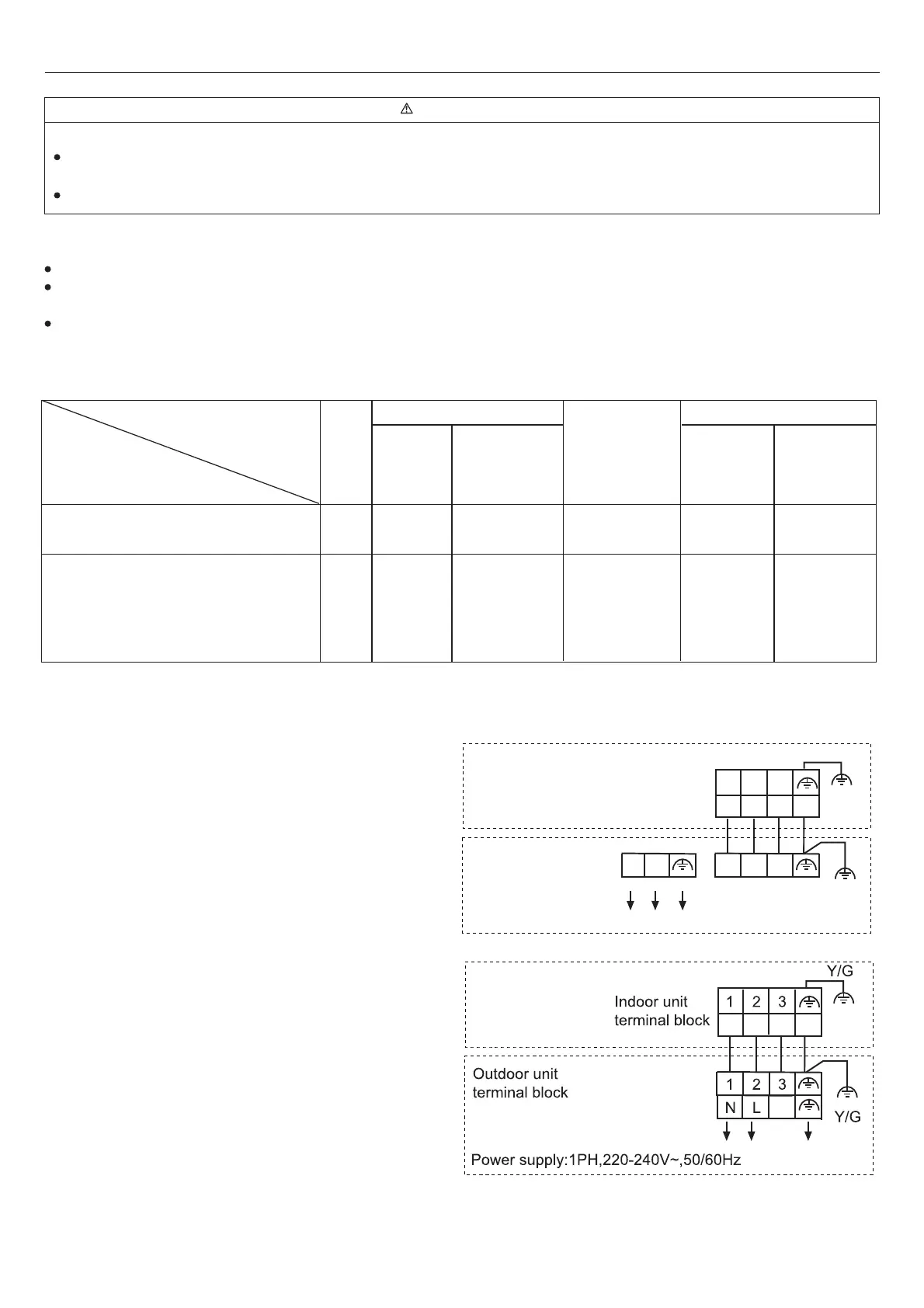 Make wiring to supply power to the outdoor unit, so that the power for the indoor unit is supplied by outdoor