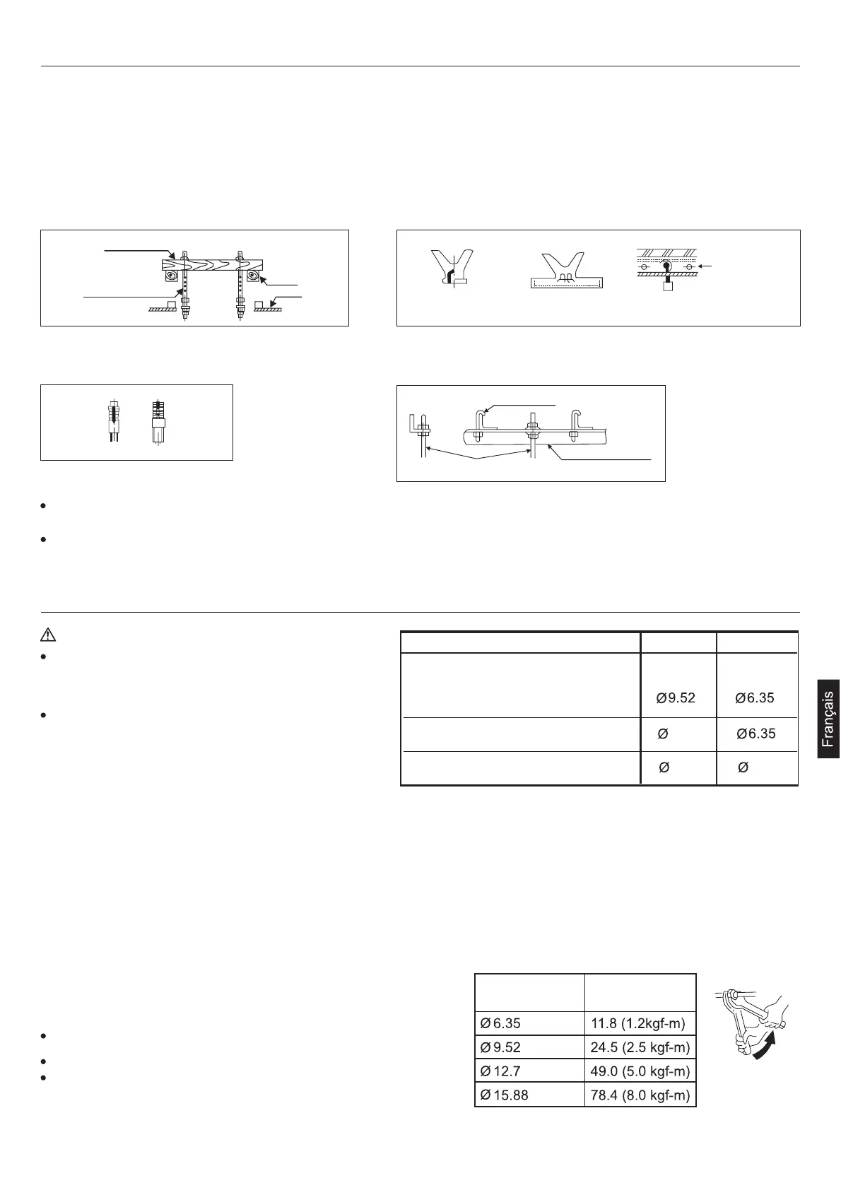 Utilisez des vis de suspension M8 ou M10 (4 préparé sur site) (quand la hauteur des vis de suspension dépasse 0,9 m, la