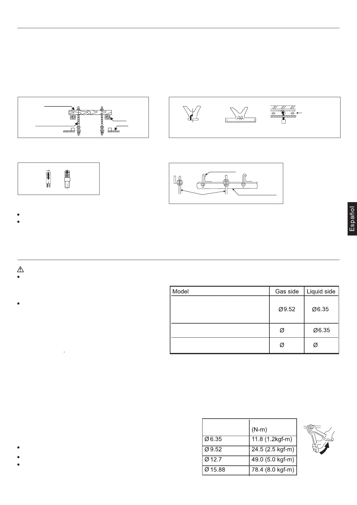 Utilice tornillos de suspensión M8 o M10 (4 preparados en el terreno) (cuando la altura del tornillo de suspensión supere los