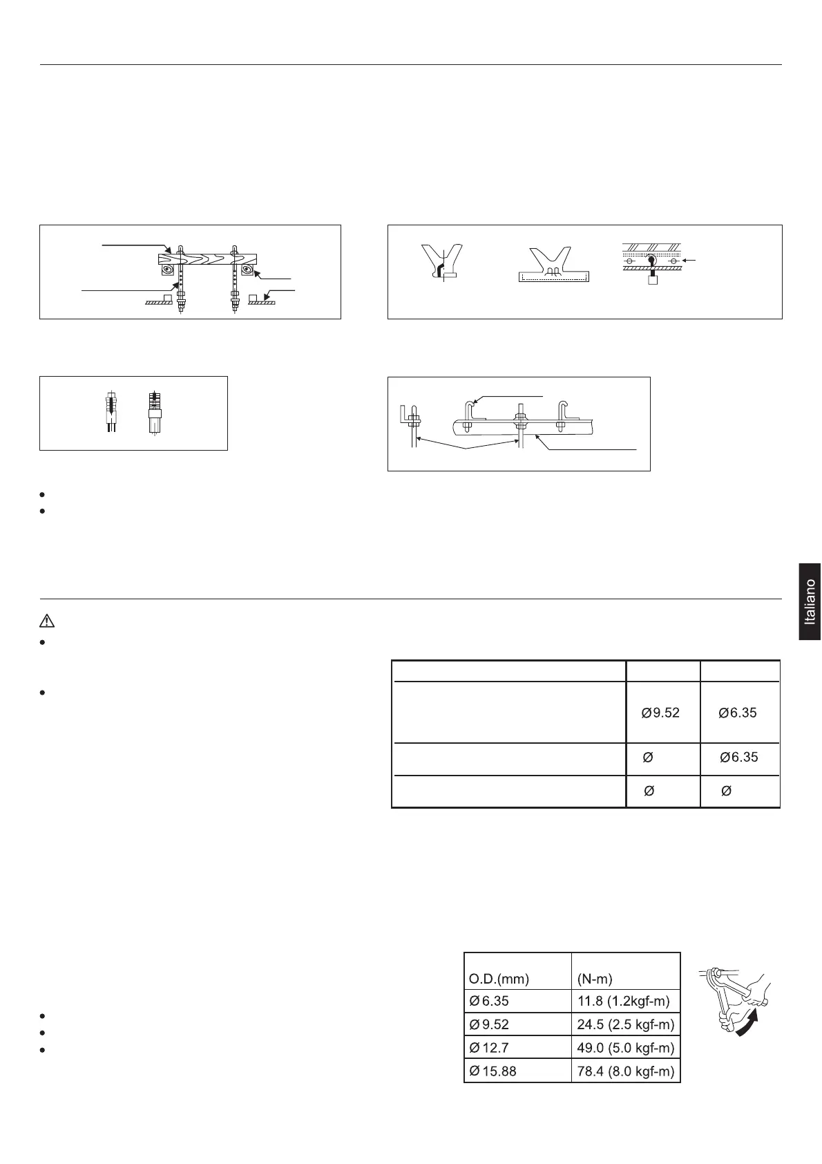 La coppia di installazione deve essere come indicato nella seguente tabella.