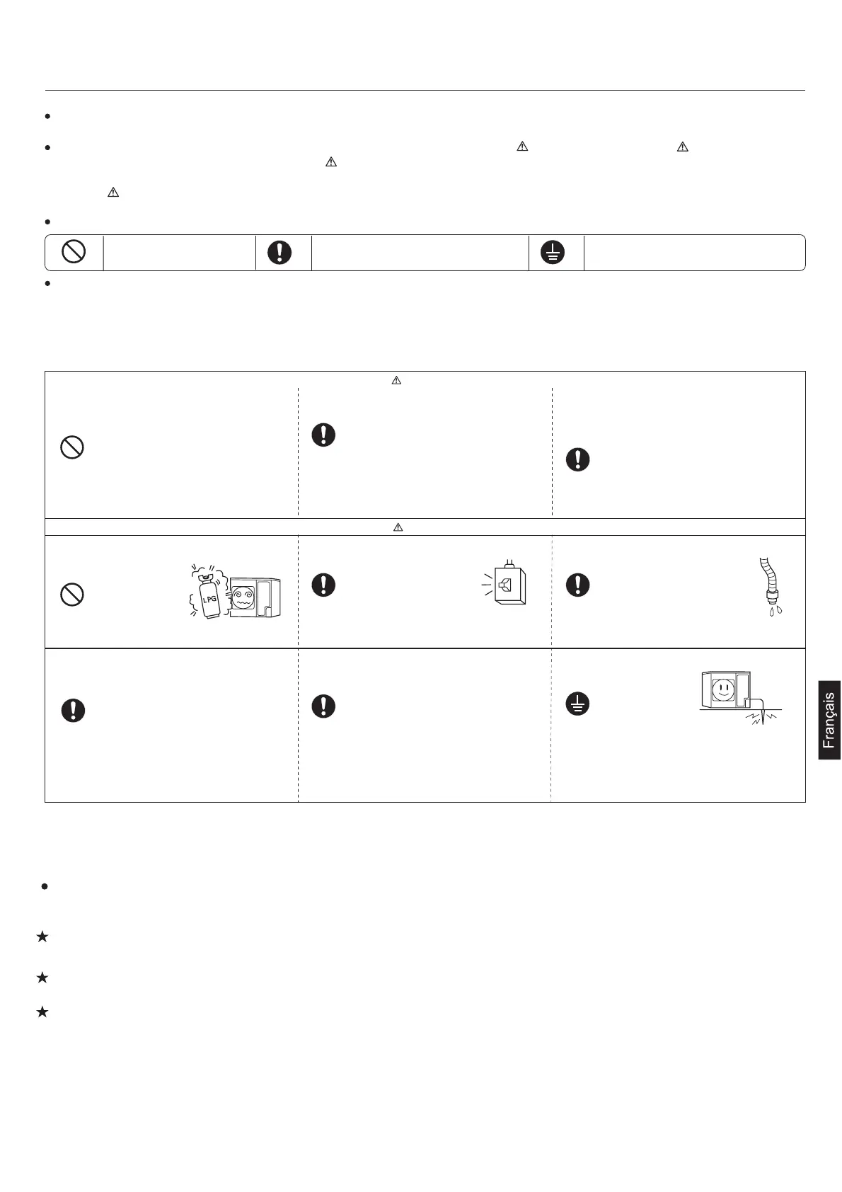 précautions qui sont affichées dans la colonne « AVERTISSEMENT » signifient qu’une mauvaise manipulation pourrait conduire à