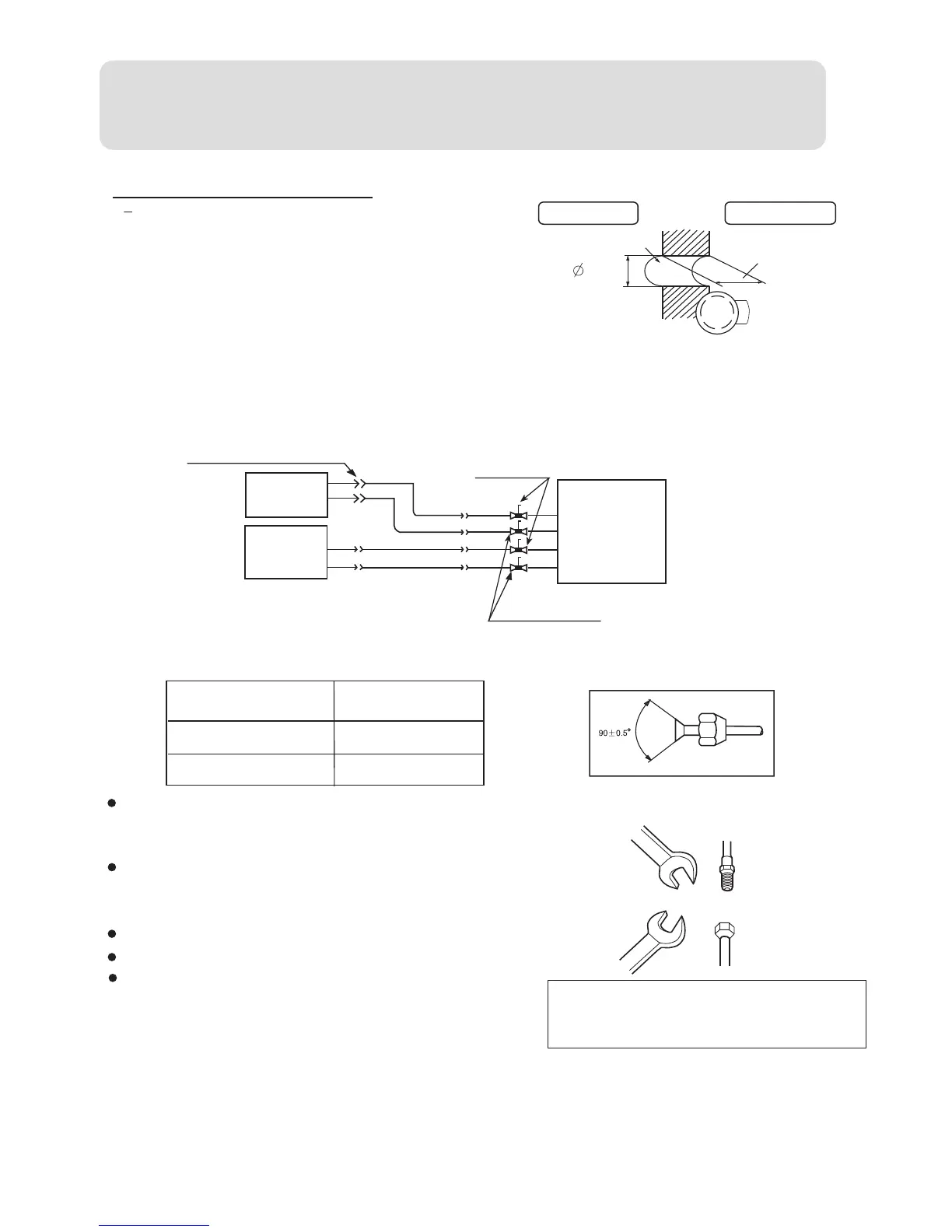 Apply refrigeration oil on the end of the pipe to be connected and on the flared section.