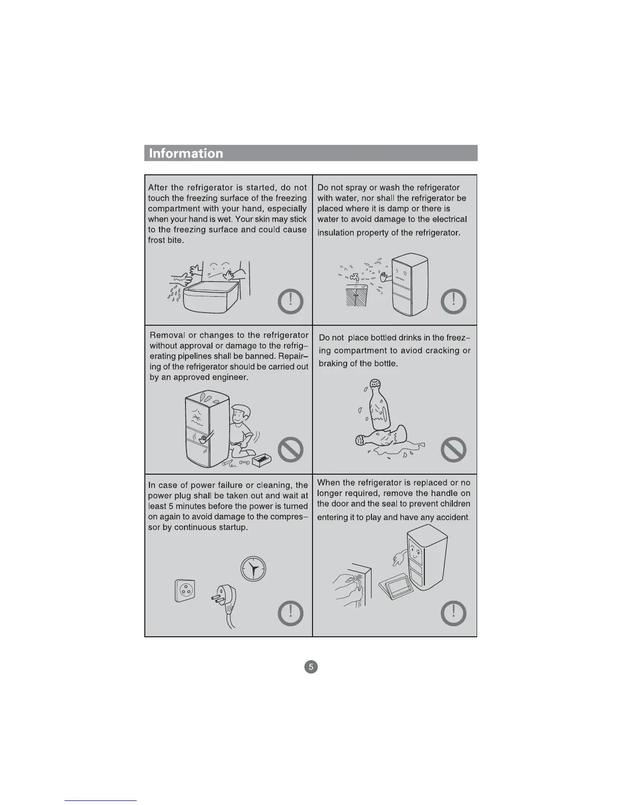 Haier AFD626TF - Information; Operation and Handling Warnings; Bottled Drinks and Power Failure
