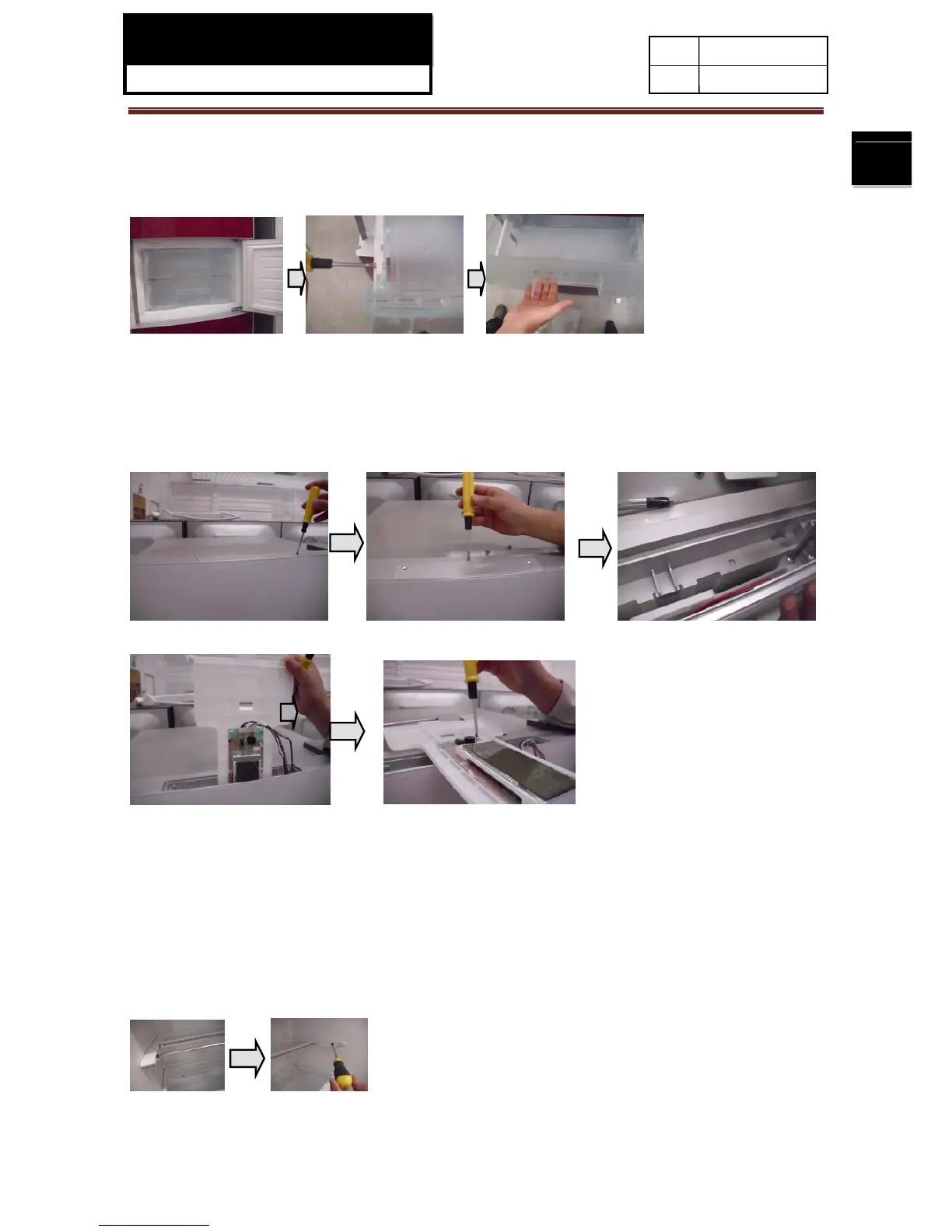 (1) Detach 2 screws fixing on the top cover of the fridge door (fig. ①);