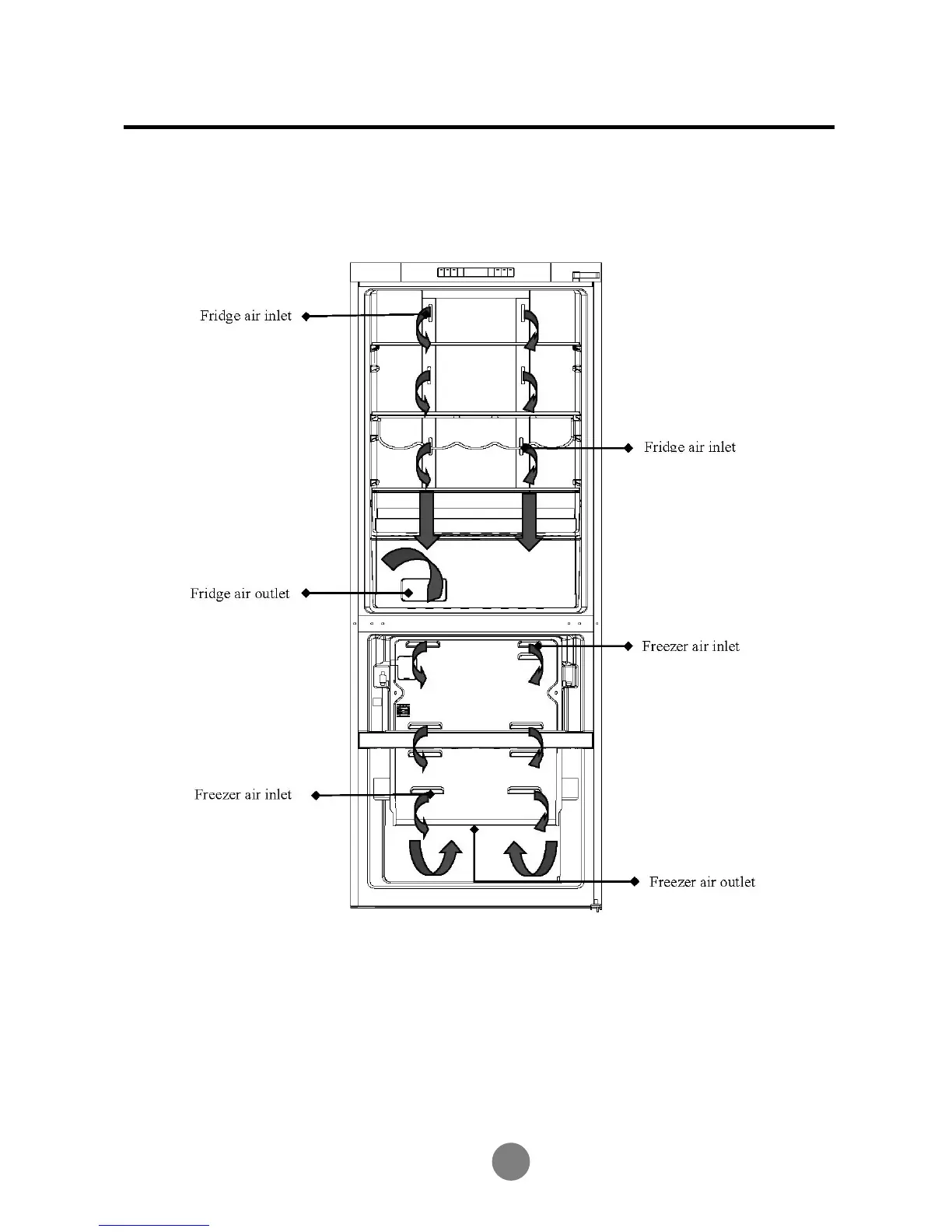 Schematic drawing and description of air circulation in the refrigerator air-duct
